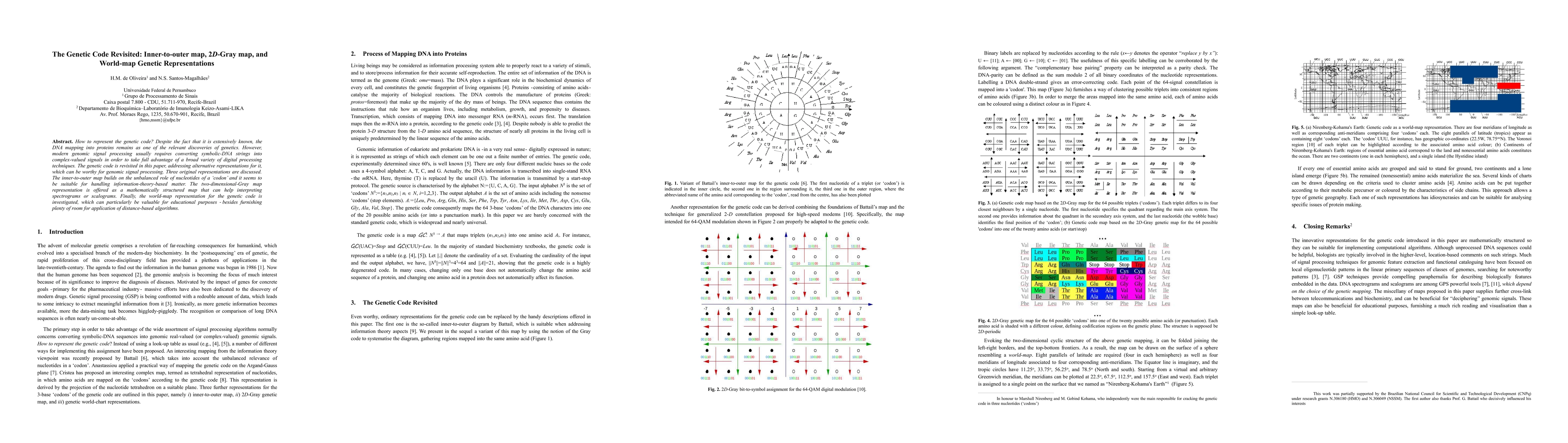 This paper explores alternative representations of the genetic code for genomic signal processing, including the inner-to-outer map, the two-dimensional Gray map, and the world-map representation, each suited for different applications such as information theory, spectrogram interpretation, and educational purposes.