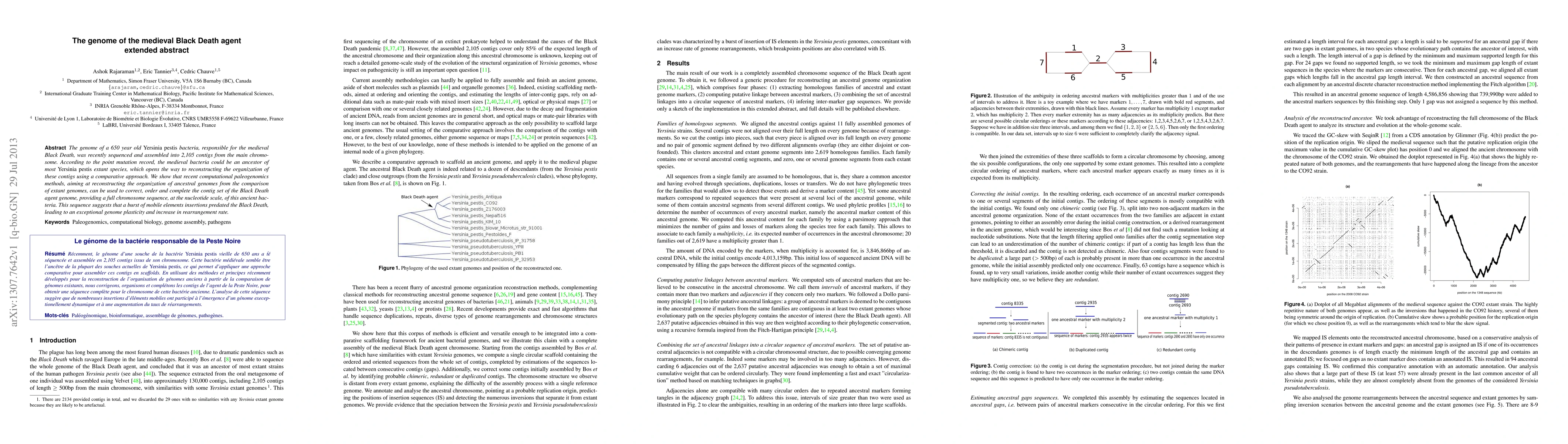 The genome of a 650-year-old Yersinia pestis bacterium, linked to the medieval Black Death, has been sequenced and assembled. Computational paleogenomics methods enabled the reconstruction of its full chromosome sequence, revealing a history of mobile element insertions and genome plasticity.