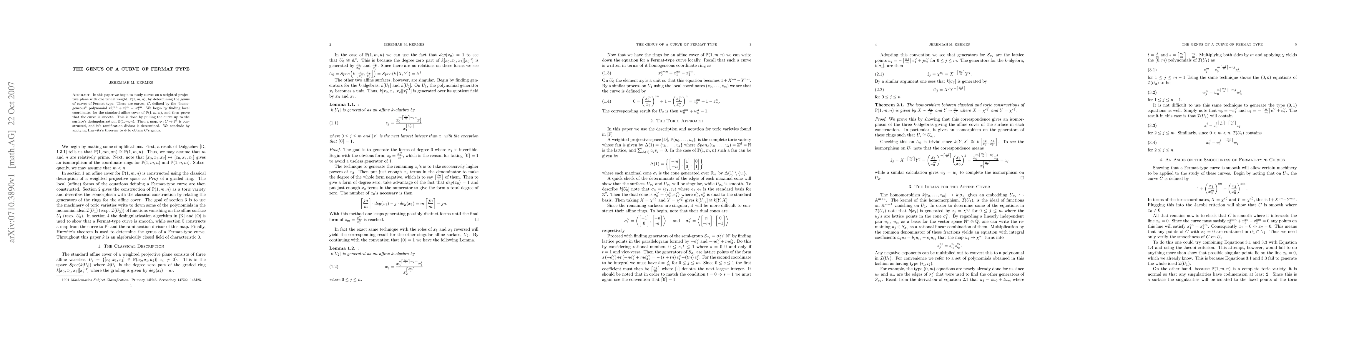 Researchers study curves on a weighted projective plane by determining their genus for Fermat type curves, using Hurwitz's theorem to derive the curve's genus.