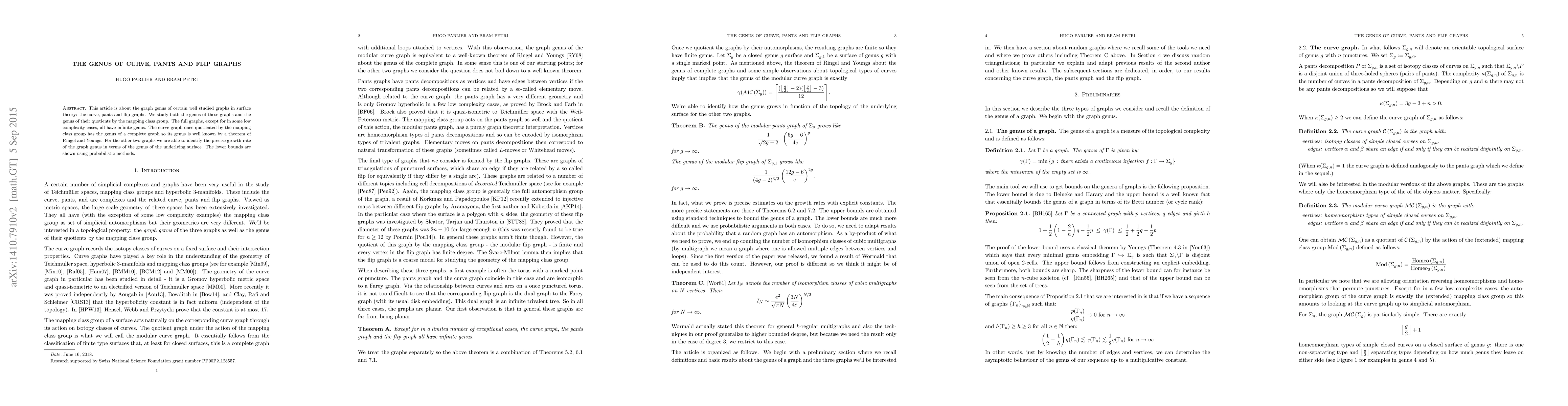 This article is about the graph genus of certain well studied graphs in surface theory: the curve, pants and flip graphs. We study both the genus of these graphs and the genus of their quotients by the mapping class group. The full graphs, except for in some low complexity cases, all have infinite genus. The curve graph once quotiented by the mapping class group has the genus of a complete graph so its genus is well known by a theorem of Ringel and Youngs. For the other two graphs we are able to identify the precise growth rate of the graph genus in terms of the genus of the underlying surface. The lower bounds are shown using probabilistic methods.