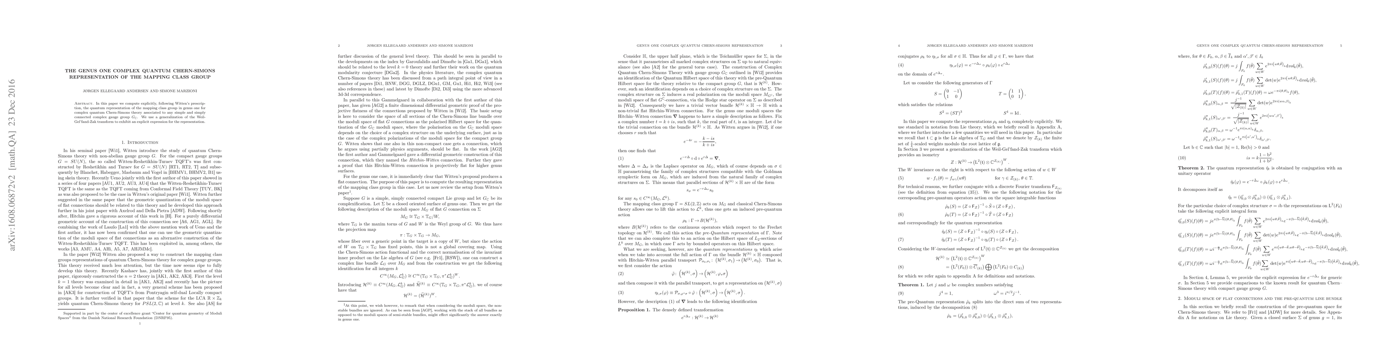 Researchers computed a quantum representation of the mapping class group in genus one for complex Chern-Simons theory associated with any simple gauge group, using a transformation method inspired by Witten's prescription.
