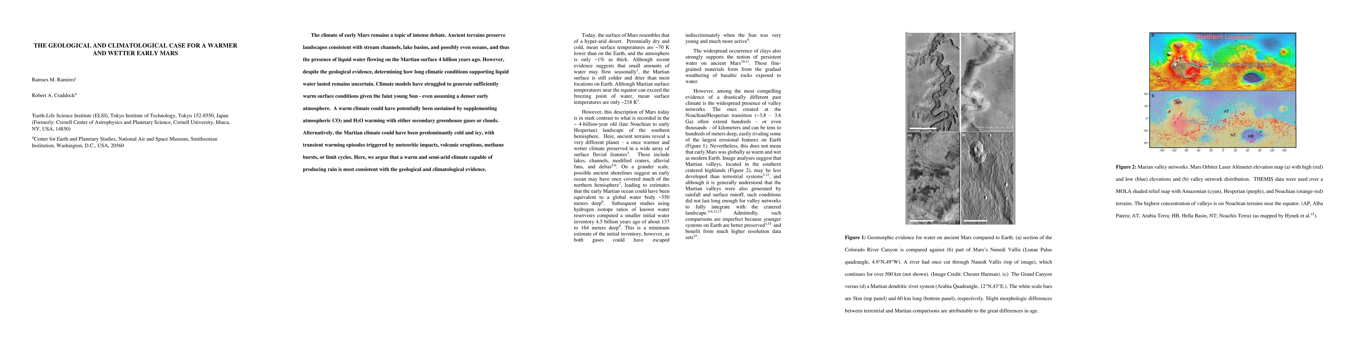The climate of early Mars remains a topic of intense debate. Ancient terrains preserve landscapes consistent with stream channels, lake basins, and possibly even oceans, and thus the presence of liquid water flowing on the Martian surface 4 billion years ago. However, despite the geological evidence, determining how long climatic conditions supporting liquid water lasted remains uncertain. Climate models have struggled to generate sufficiently warm surface conditions given the faint young Sun - even assuming a denser early atmosphere. A warm climate could have potentially been sustained by supplementing atmospheric CO2 and H2O warming with either secondary greenhouse gases or clouds. Alternatively, the Martian climate could have been predominantly cold and icy, with transient warming episodes triggered by meteoritic impacts, volcanic eruptions, methane bursts, or limit cycles. Here, we argue that a warm and semi-arid climate capable of producing rain is most consistent with the geological and climatological evidence.
