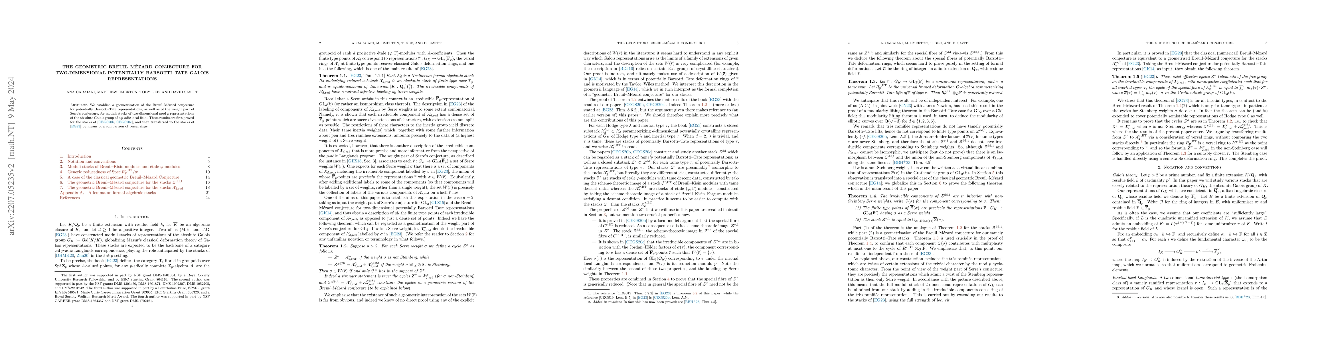The research establishes a geometrical interpretation of the Breuil-Mézard conjecture for potentially Barsotti-Tate Galois representations, utilizing moduli stacks of two-dimensional representations over p-adic local fields.