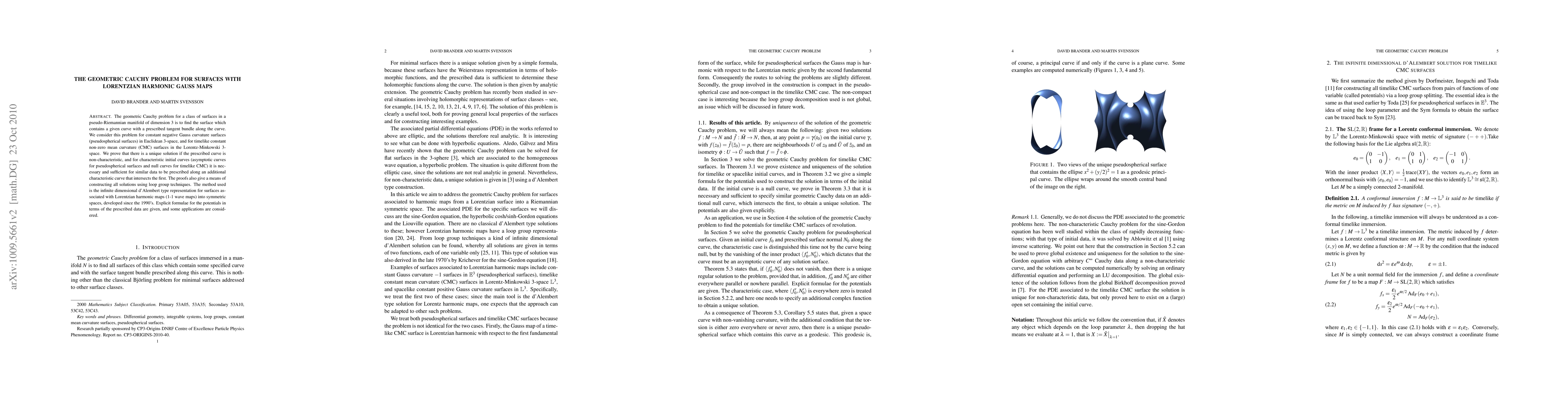 Researchers solved the geometric Cauchy problem for surfaces with prescribed curves in 3D spaces, finding unique solutions for non-characteristic curves and requiring additional data for characteristic curves.