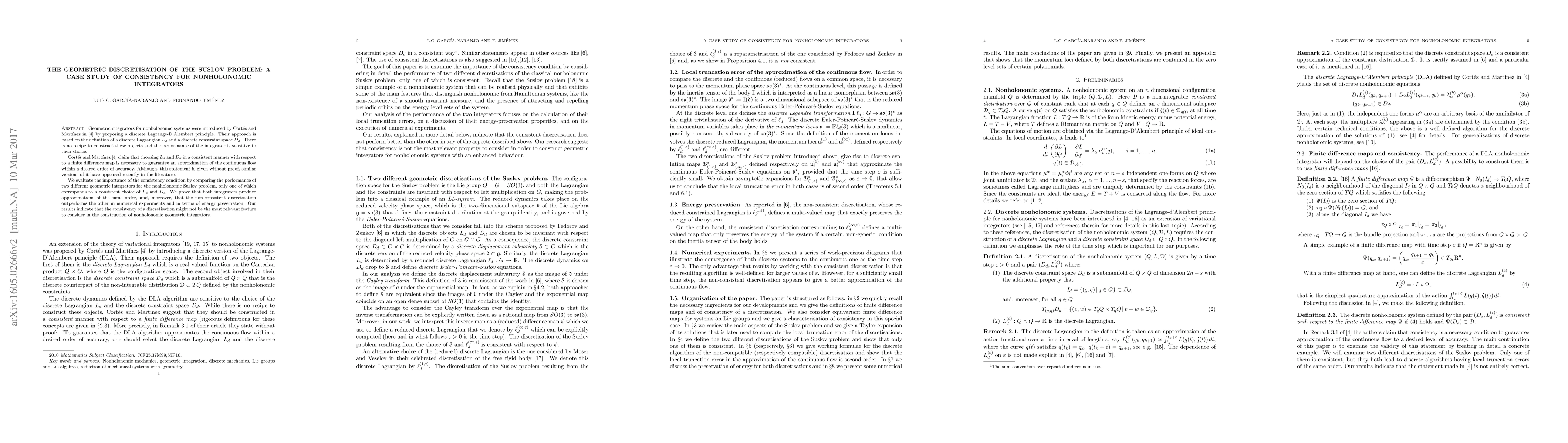 Geometric integrators for nonholonomic systems were introduced by Cort\'es and Mart\'inez in [Nonholonomic integrators, Nonlinearity, 14, 2001] by proposing a discrete Lagrange-D'Alembert principle. Their approach is based on the definition of a discrete Lagrangian $L_d$ and a discrete constraint space $D_d$. There is no recipe to construct these objects and the performance of the integrator is sensitive to their choice. Cort\'es and Mart\'inez claim that choosing $L_d$ and $D_d$ in a consistent manner with respect to a finite difference map is necessary to guarantee an approximation of the continuous flow within a desired order of accuracy. Although this statement is given without proof, similar versions of it have appeared recently in the literature. We evaluate the importance of the consistency condition by comparing the performance of two different geometric integrators for the nonholonomic Suslov problem, only one of which corresponds to a consistent choice of $L_d$ and $D_d$. We prove that both integrators produce approximations of the same order, and, moreover, that the non-consistent discretisation outperforms the other in numerical experiments and in terms of energy preservation. Our results indicate that the consistency of a discretisation might not be the most relevant feature to consider in the construction of nonholonomic geometric integrators.