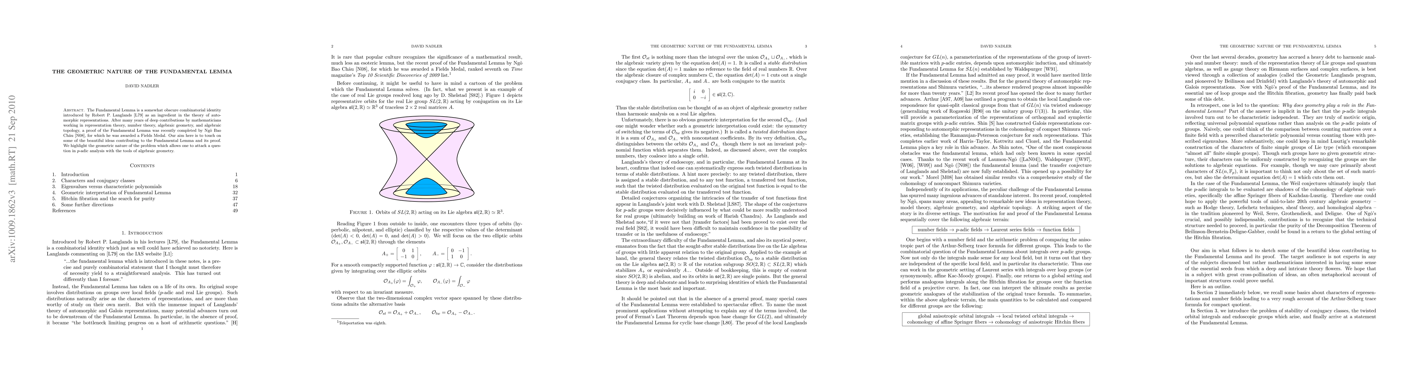 The Fundamental Lemma is a somewhat obscure combinatorial identity introduced by Robert P. Langlands as an ingredient in the theory of automorphic representations. After many years of deep contributions by mathematicians working in representation theory, number theory, algebraic geometry, and algebraic topology, a proof of the Fundamental Lemma was recently completed by Ngo Bao Chau, for which he was awarded a Fields Medal. Our aim here is to touch on some of the beautiful ideas contributing to the Fundamental Lemma and its proof. We highlight the geometric nature of the problem which allows one to attack a question in p-adic analysis with the tools of algebraic geometry.