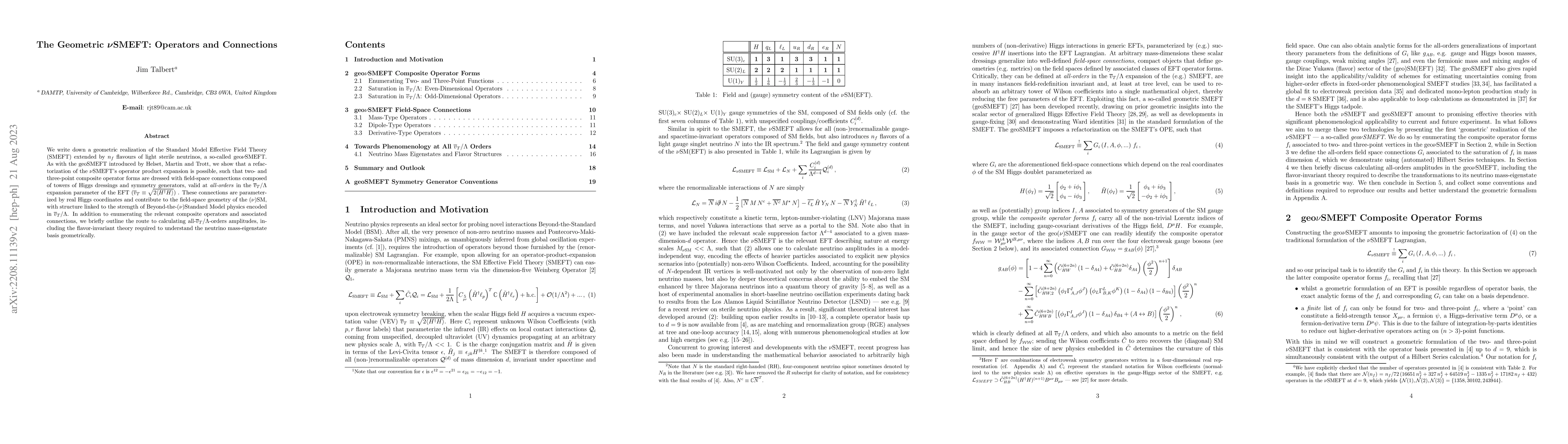 This paper presents a geometric formulation of the Standard Model Effective Field Theory (SMEFT) extended with sterile neutrinos, termed geo$\nu$SMEFT. It introduces field-space connections that refactorize the operator product expansion, valid at all orders in the $\overline{v}_T/\Lambda$ expansion parameter, and outlines a method for calculating amplitudes to all orders.