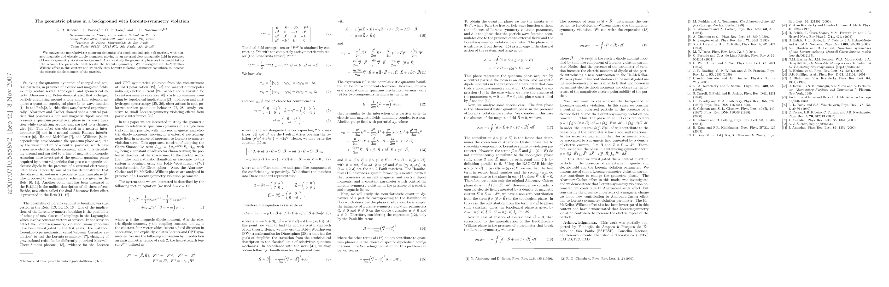 We analyze the nonrelativistic quantum dynamics of a single neutral spin half particle, with non-zero magnetic and electric dipole moments, moving in an external electromagnetic field in presence of Lorentz symmetry violation background. Also, we study the geometric phase for this model taking into account the parameter that breaks the Lorentz symmetry. We investigate the He-McKellar-Wilkens effect in this context and we verify that Lorentz violation parameter contribute to increase the electric dipole moment of the particle.