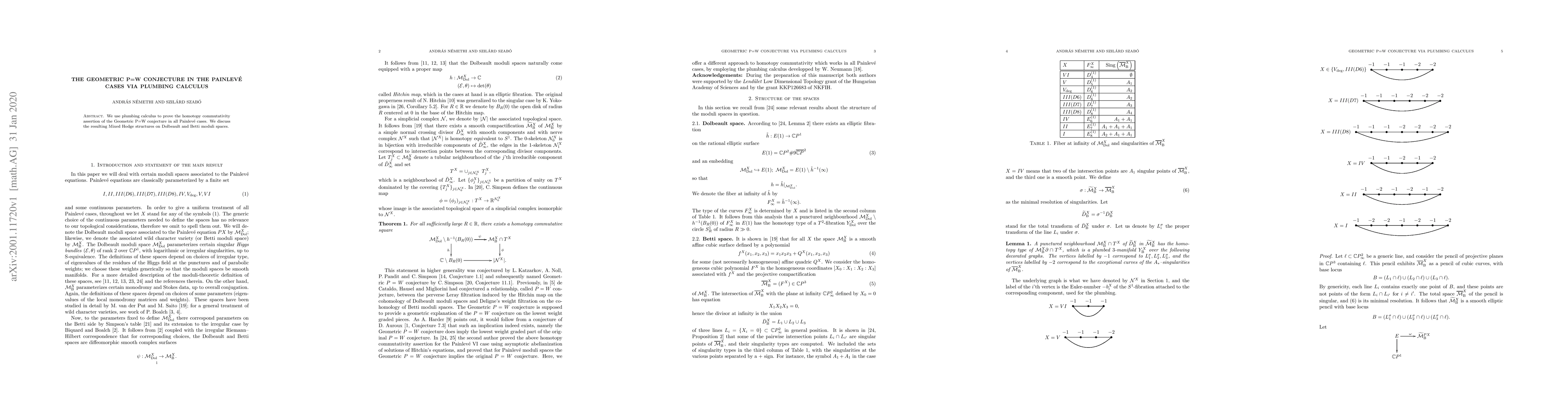 The paper proves the Geometric P=W conjecture in Painlevé cases using plumbing calculus, leading to new insights into Mixed Hodge structures on moduli spaces.