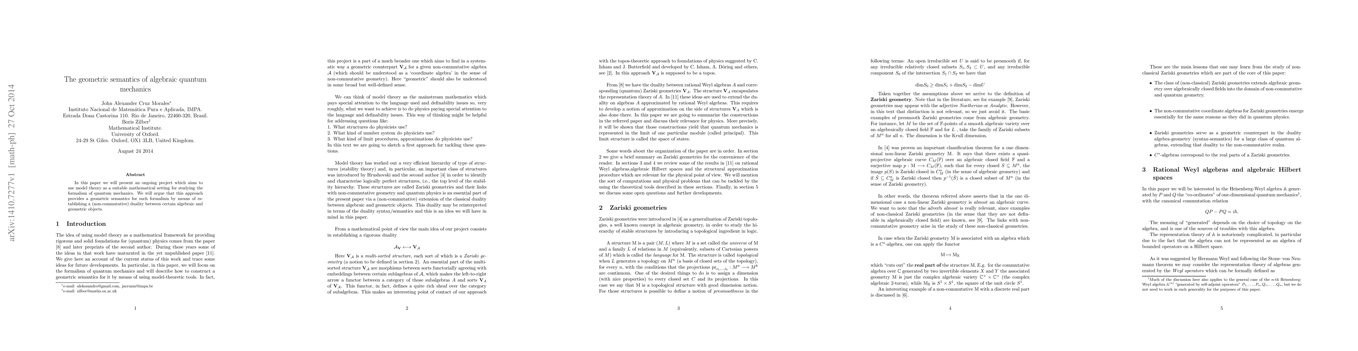 This research explores using model theory to link algebraic and geometric perspectives in quantum mechanics, offering a new way to understand its formal structure. The approach establishes a duality that could enhance the geometric interpretation of quantum systems.