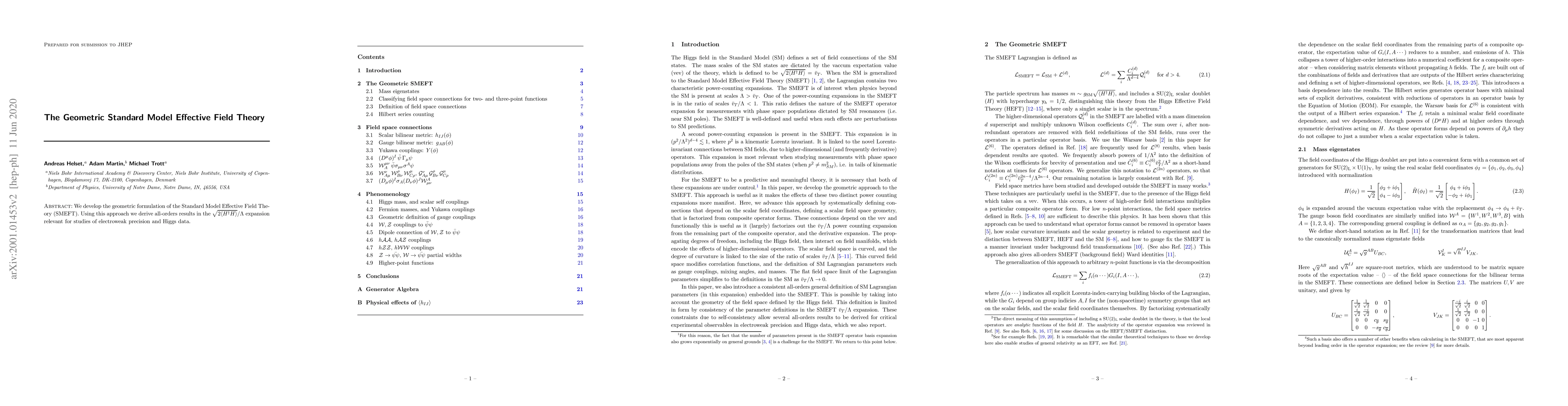 This paper presents a geometric formulation of the Standard Model Effective Field Theory (SMEFT) and derives all-order results in the $\sqrt{2 \langle H^\dagger H \rangle}/\Lambda$ expansion, which is crucial for analyzing electroweak precision and Higgs data. The geometric approach provides a new framework for understanding these phenomena.