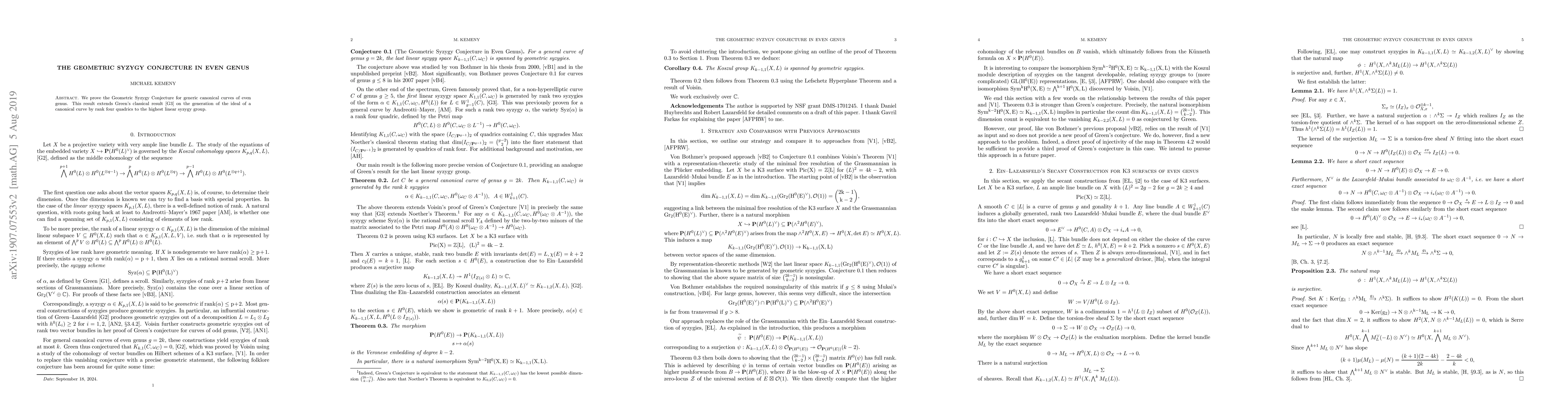 The paper proves the Geometric Syzygy Conjecture for generic canonical curves of even genus, extending Green's classical result regarding the generation of the ideal of a canonical curve by rank four quadrics to the highest linear syzygy group.