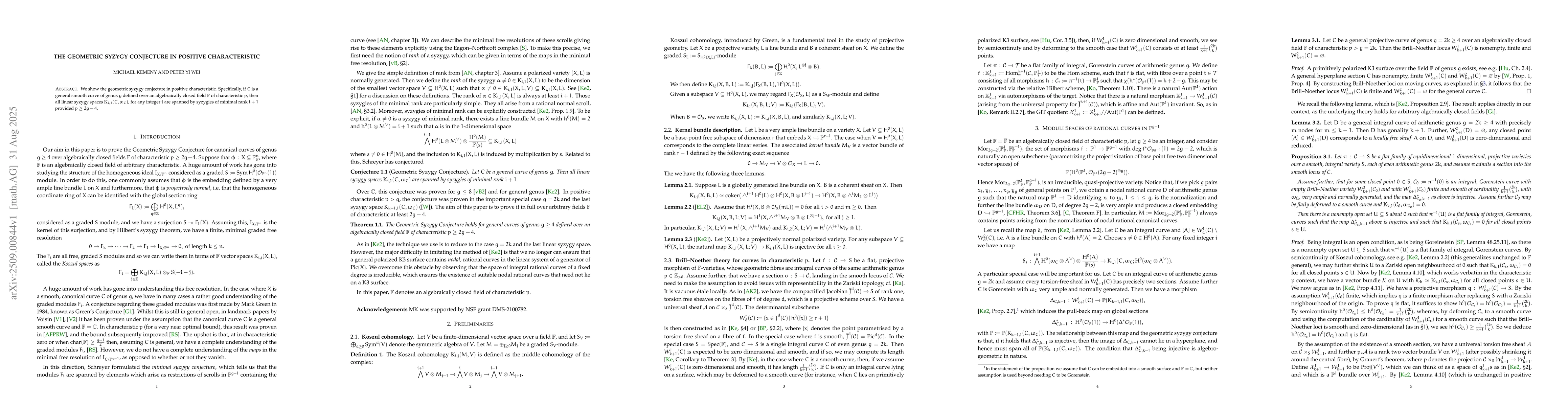 We show the geometric syzygy conjecture in positive characteristic. Specifically, if C is a general smooth curve of genus g defined over an algebraically closed field of characteristic p, then all linear syzygy spaces are spanned by syzygies of minimal rank provided p is at least 2g-4.