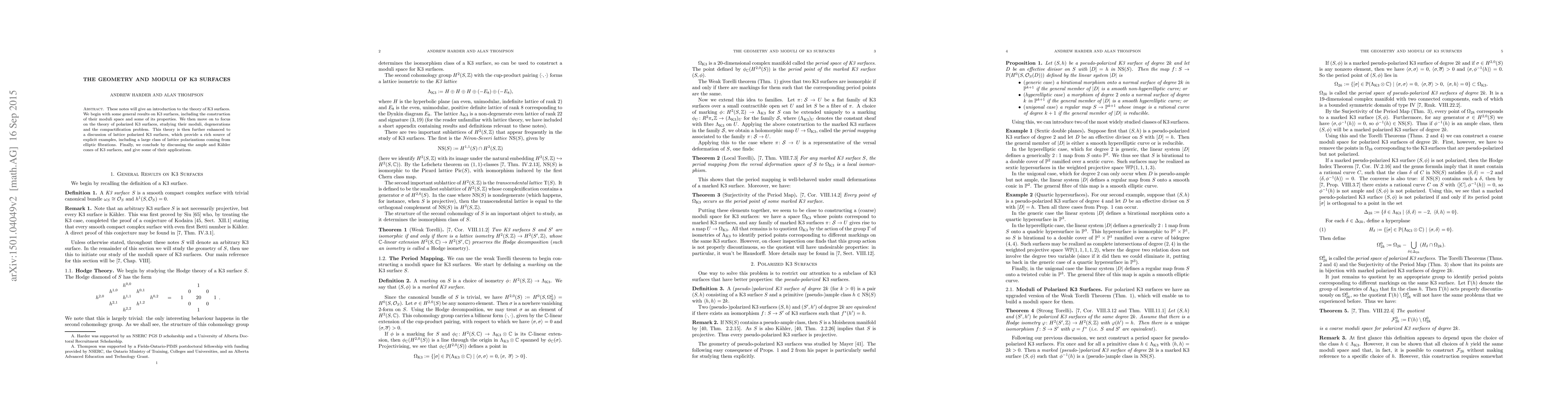 This paper introduces K3 surfaces, constructs their moduli space, and explores polarized K3 surfaces, including degenerations and lattice polarizations. It concludes with a discussion of the ample and Kähler cones and their applications.