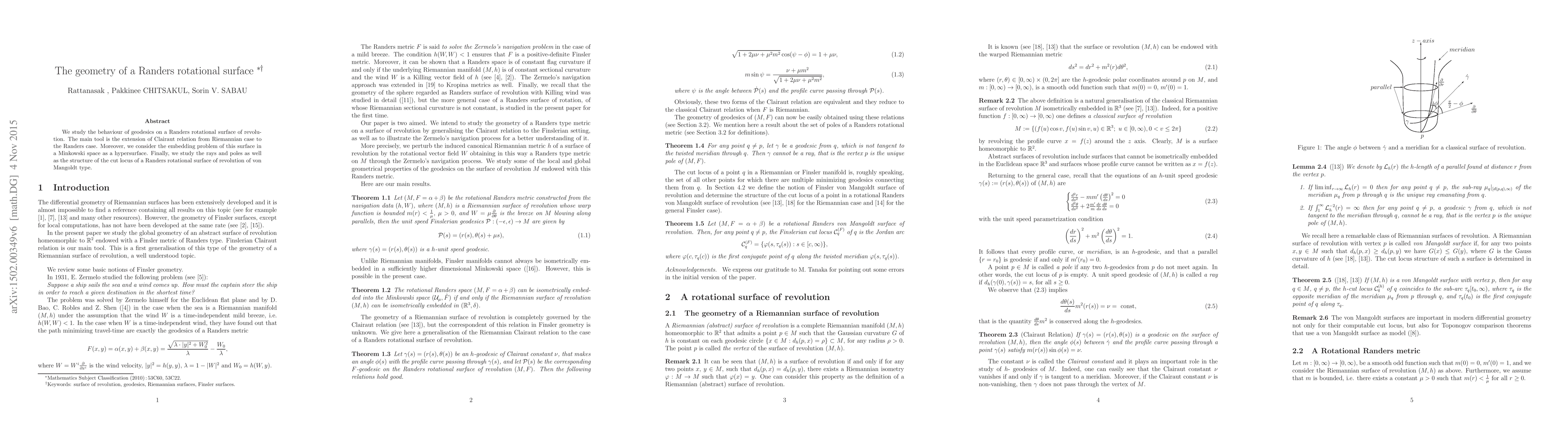 Summary: This paper investigates the geodesics on a Randers rotational surface, extending the Clairaut relation from Riemannian to Randers geometry, and demonstrates that the Randers surface can be embedded as a hypersurface in Minkowski space.