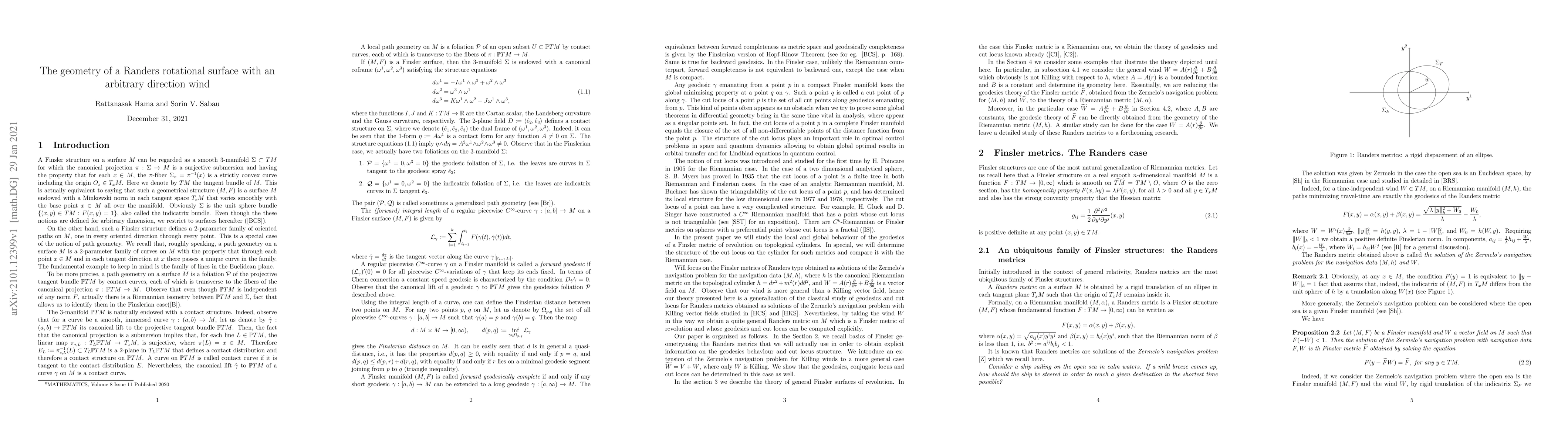 In the present paper we study the global behaviour of geodesics on a Randers metric, defined on a topological cylinder, obtained as the solution of the Zermelo's navigation problem. Our wind is not necessarily a Killing field. In special we concentrate our study on the geodesics equation on the base manifold, the conjugate and cut loci.