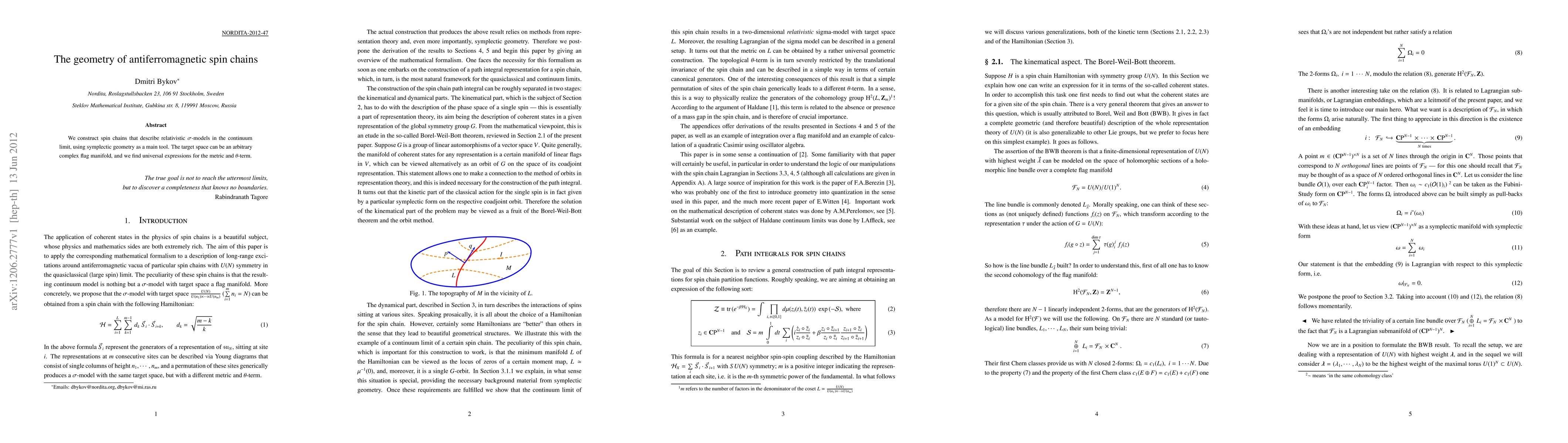 We construct spin chains that describe relativistic sigma-models in the continuum limit, using symplectic geometry as a main tool. The target space can be an arbitrary complex flag manifold, and we find universal expressions for the metric and theta-term.