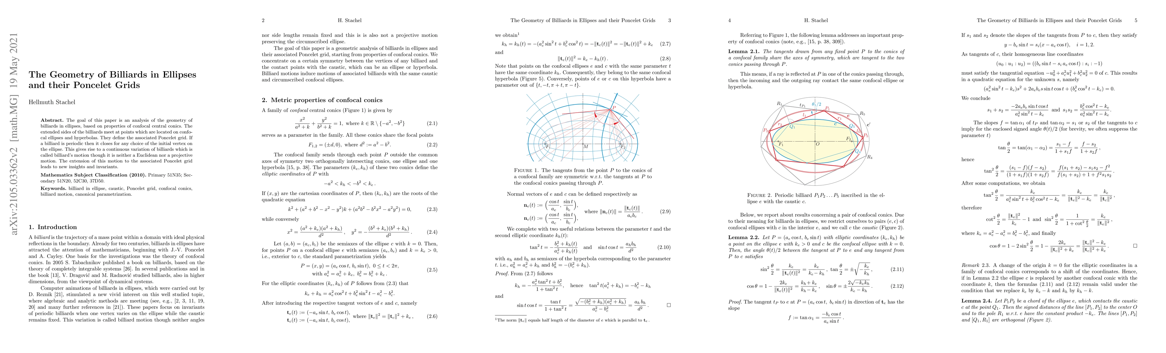 This paper analyzes billiards in ellipses using confocal central conics and their associated Poncelet grids, revealing a continuous variation of motion that sheds new light on geometric properties.