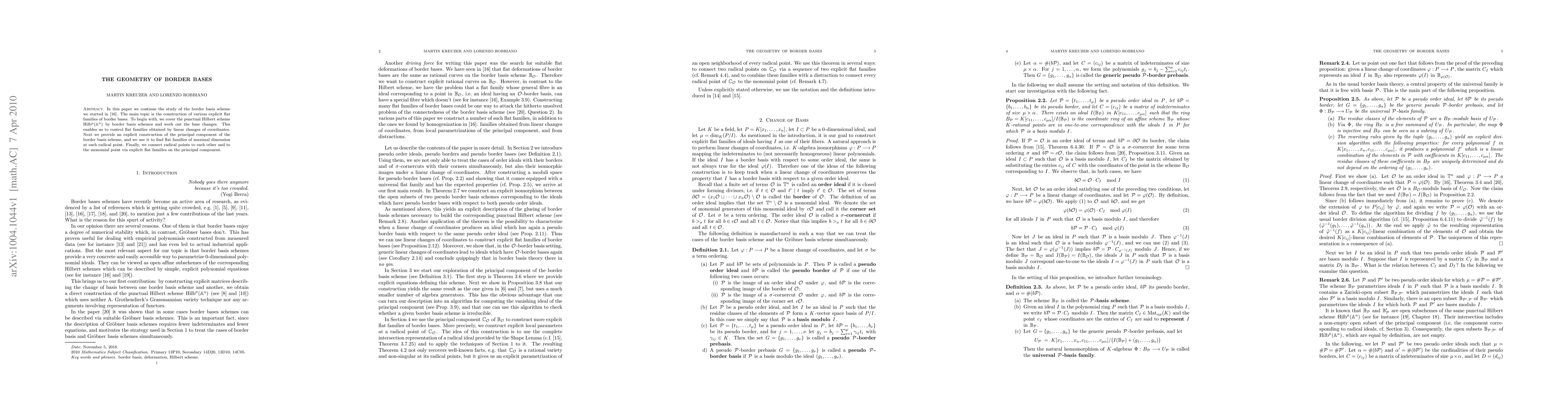 The main topic of the paper is the construction of various explicit flat families of border bases. To begin with, we cover the punctual Hilbert scheme Hilb^\mu(A^n) by border basis schemes and work out the base changes. This enables us to control flat families obtained by linear changes of coordinates. Next we provide an explicit construction of the principal component of the border basis scheme, and we use it to find flat families of maximal dimension at each radical point. Finally, we connect radical points to each other and to the monomial point via explicit flat families on the principal component.