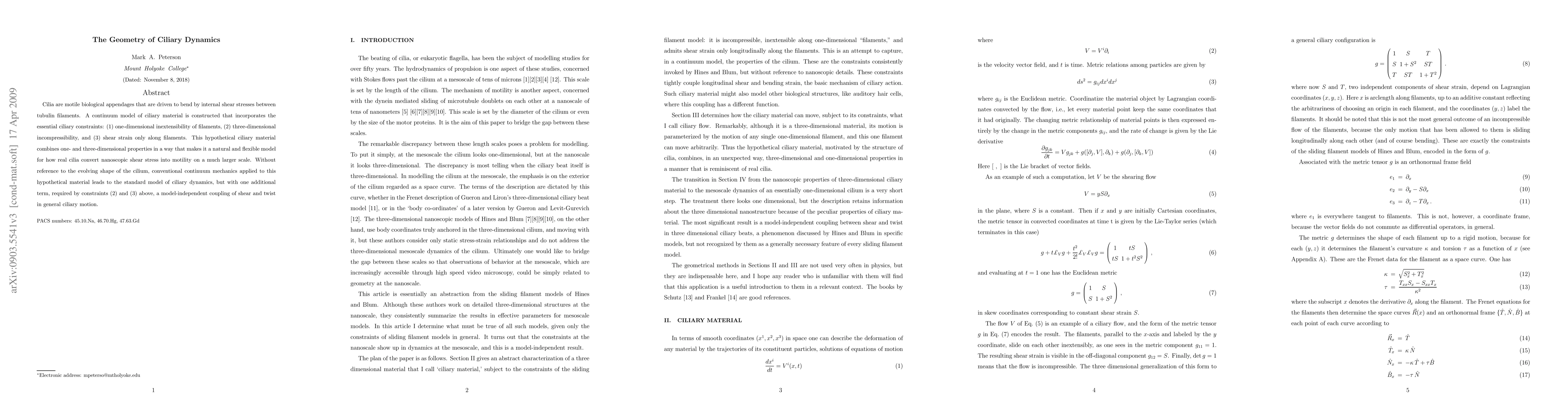 Researchers developed a mathematical model of ciliary dynamics that explains how tiny shears in cilia lead to movement, combining one- and three-dimensional properties for a flexible model. The new model also accounts for the coupling between shear and twist motions in general cilia motion.