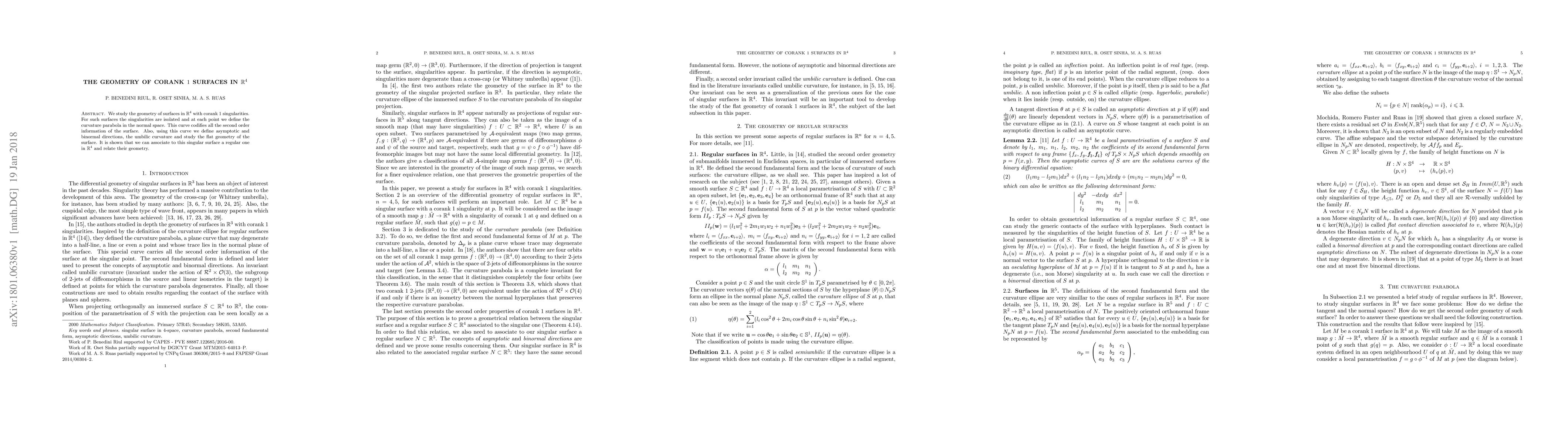 This paper investigates the geometry of corank $1$ surfaces in $\mathbb{R}^{4}$, defining curvature parabolas in normal space to encapsulate second-order information. It also explores asymptotic and binormal directions, umbilic curvature, and the flat geometry, linking the singular surface to a regular one in $\mathbb{R}^{4}$.