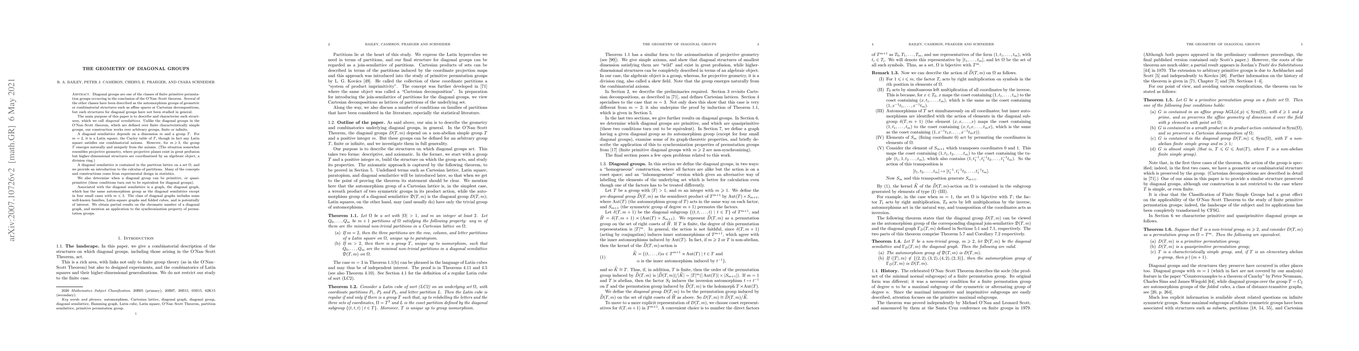 This paper explores the geometry of diagonal groups, introducing "diagonal semilattices" as structures that generalize Latin squares and are associated with groups. It characterizes these structures and their connections to partition lattices and graph theory, determining conditions for primitivity and quasiprimitivity of diagonal groups.