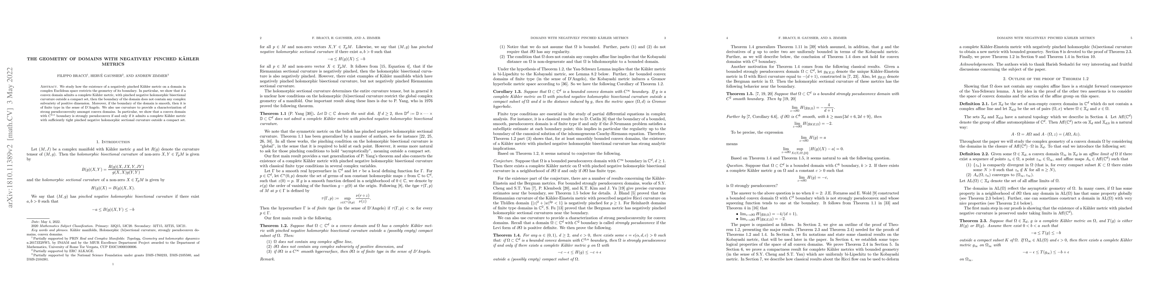 We study how the existence of a negatively pinched K\"ahler metric on a domain in complex Euclidean space restricts the geometry of its boundary. In particular, we show that if a convex domain admits a complete K\"ahler metric, with pinched negative holomorphic bisectional curvature outside a compact set, then the boundary of the domain does not contain any complex subvariety of positive domain. Moreover, if the boundary of the domain is smooth, then it is of finite type in the sense of D'Angelo. We also use curvature to provide a characterization of strong pseudoconvexity amongst convex domains. In particular, we show that a convex domain with $C^{2,\alpha}$ boundary is strongly pseudoconvex if and only if it admits a complete K\"ahler metric with sufficiently tight pinched negative holomorphic sectional curvature outside a compact set.