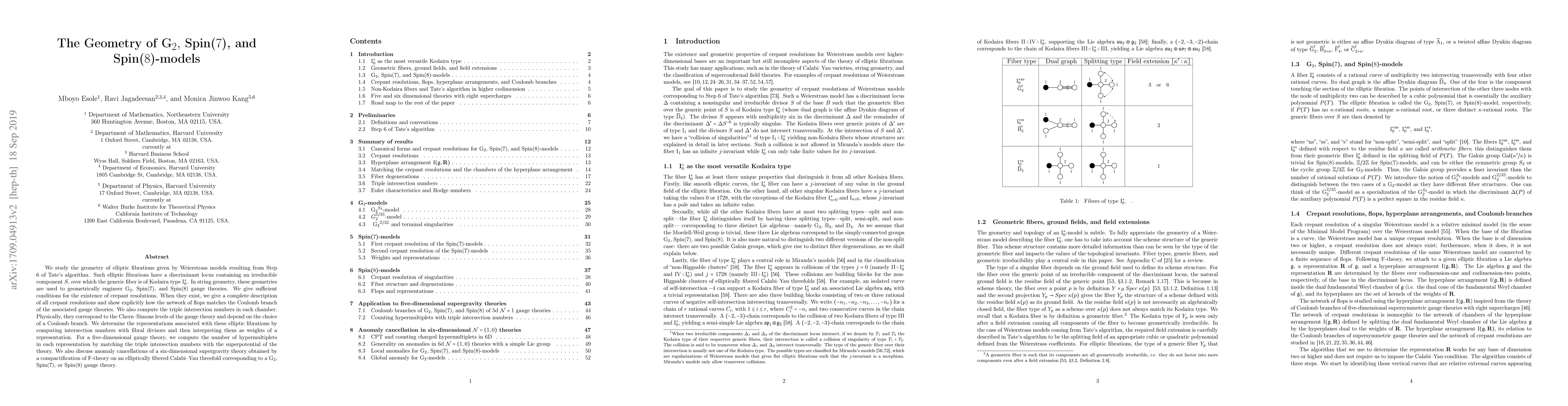 Researchers studied the geometry of elliptic fibrations in string theory to engineer G2, Spin(7), and Spin(8) gauge theories, discovering sufficient conditions for crepant resolutions and their connections to Chern-Simons levels and hypermultiplets.