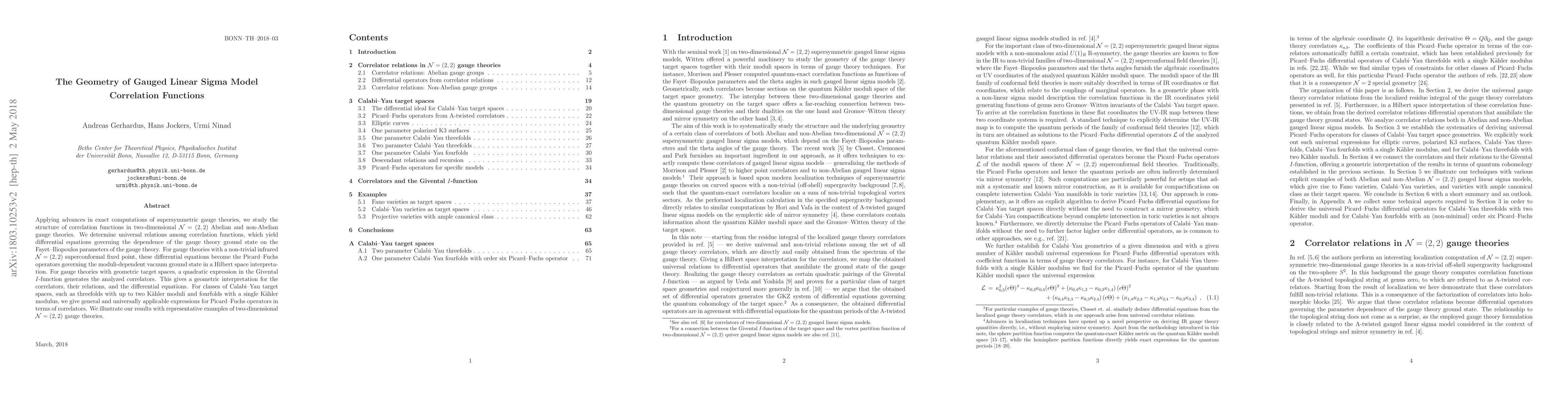 Applying advances in exact computations of supersymmetric gauge theories, we study the structure of correlation functions in two-dimensional N=(2,2) Abelian and non-Abelian gauge theories. We determine universal relations among correlation functions, which yield differential equations governing the dependence of the gauge theory ground state on the Fayet-Iliopoulos parameters of the gauge theory. For gauge theories with a non-trivial infrared N=(2,2) superconformal fixed point, these differential equations become the Picard-Fuchs operators governing the moduli-dependent vacuum ground state in a Hilbert space interpretation. For gauge theories with geometric target spaces, a quadratic expression in the Givental I-function generates the analyzed correlators. This gives a geometric interpretation for the correlators, their relations, and the differential equations. For classes of Calabi-Yau target spaces, such as threefolds with up to two Kahler moduli and fourfolds with a single Kahler modulus, we give general and universally applicable expressions for Picard-Fuchs operators in terms of correlators. We illustrate our results with representative examples of two-dimensional N=(2,2) gauge theories.
