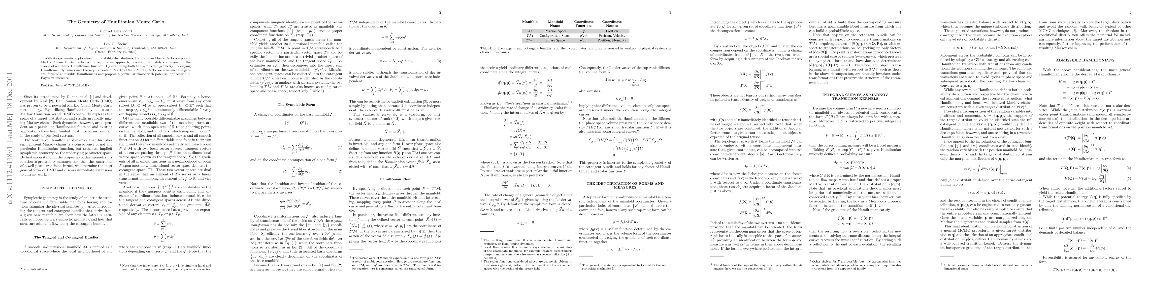 This paper explores the geometry underpinning Hamiltonian Monte Carlo (HMC), a powerful MCMC method, and constructs the general form of suitable Hamiltonian functions. It proposes a specific Hamiltonian choice that could enhance Bayesian inference.