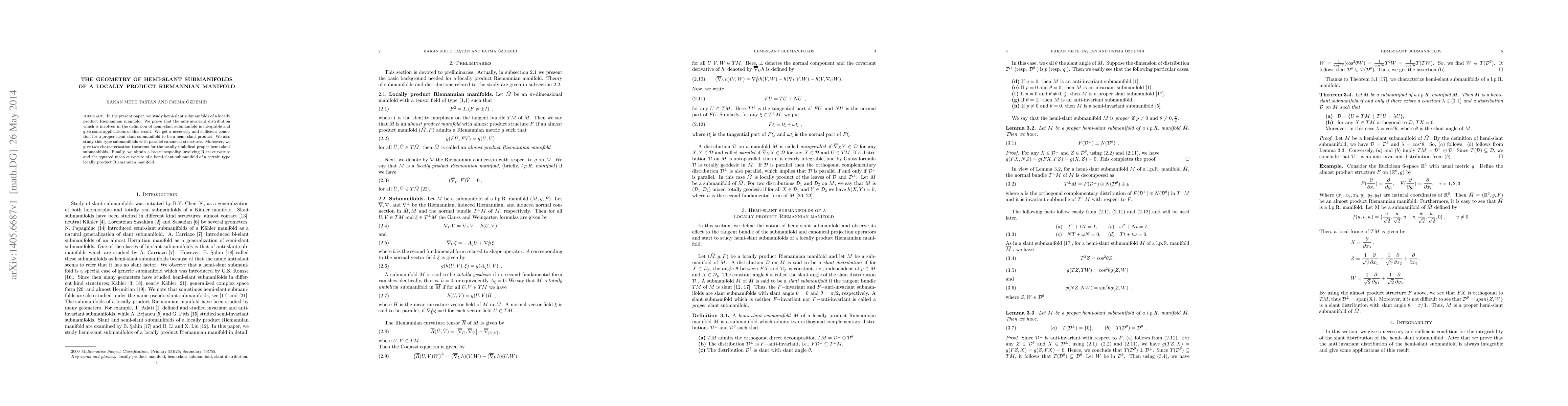 This research paper explores hemi-slant submanifolds within locally product Riemannian manifolds, proving the integrability of their anti-invariant distribution and presenting applications of this result. It also establishes conditions for these submanifolds to be hemi-slant products and provides characterization theorems for totally umbilical proper hemi-slant submanifolds, along with a basic inequality involving Ricci curvature and squared mean curvature.