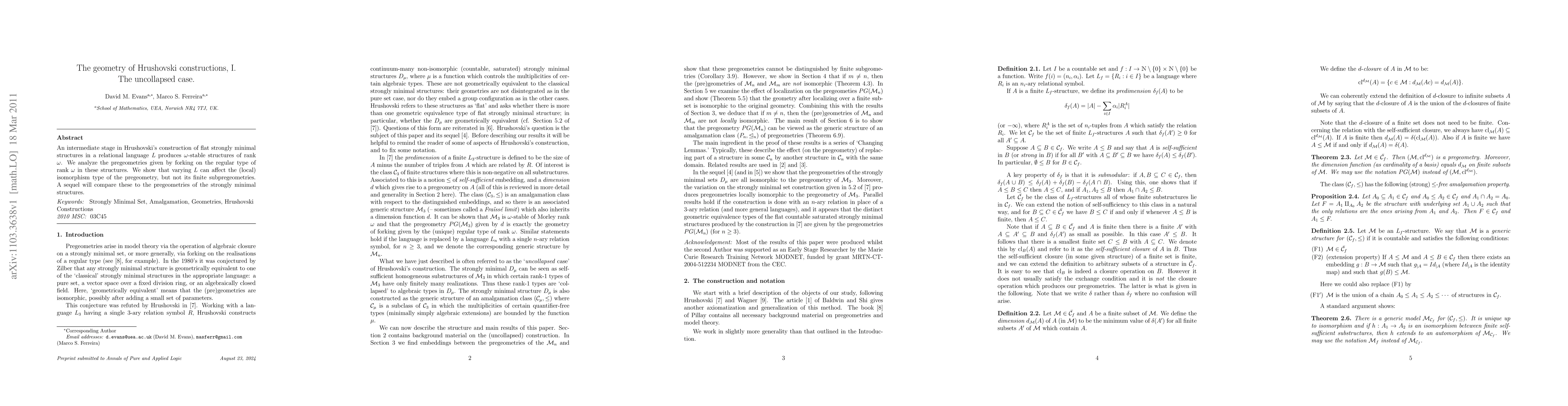 An intermediate stage in Hrushovski's construction of flat strongly minimal structures in a relational language L produces omega-stable structures of rank omega. We analyze the pregeometries given by forking on the regular type of rank omega in these structures. We show that varying L can affect the (local) isomorphism type of the pregeometry, but not its finite subpregeometries. A sequel will compare these to the pregeometries of the strongly minimal structures.