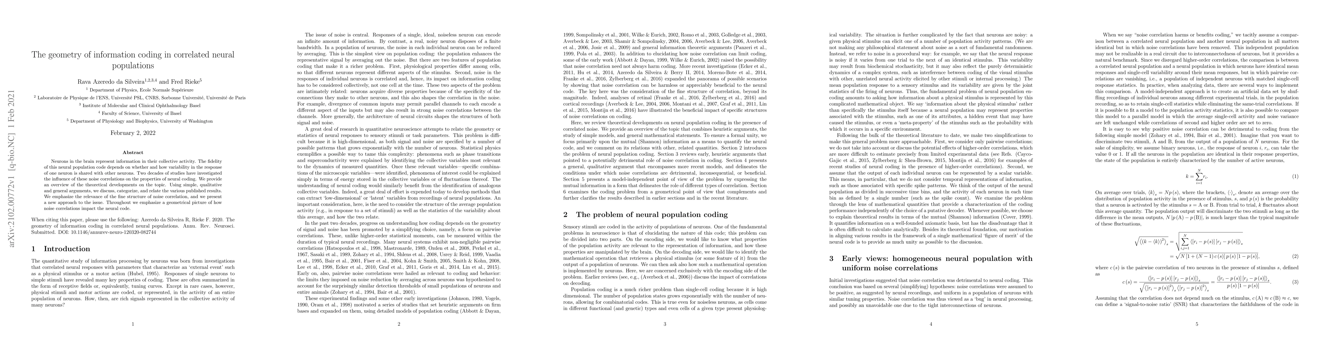 Neurons in the brain represent information in their collective activity. The fidelity of this neural population code depends on whether and how variability in the response of one neuron is shared with other neurons. Two decades of studies have investigated the influence of these noise correlations on the properties of neural coding. We provide an overview of the theoretical developments on the topic. Using simple, qualitative and general arguments, we discuss, categorize, and relate the various published results. We emphasize the relevance of the fine structure of noise correlation, and we present a new approach to the issue. Throughout we emphasize a geometrical picture of how noise correlations impact the neural code.
