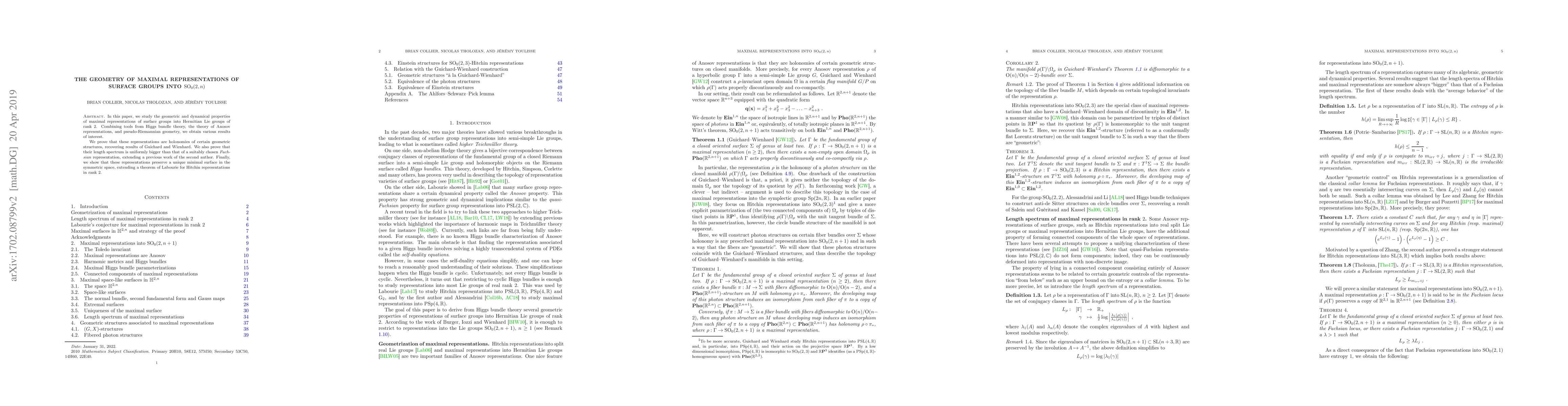 This paper investigates the geometric and dynamical properties of maximal representations of surface groups into Hermitian Lie groups of rank 2, proving they are holonomies of specific geometric structures and showing their length spectrum is uniformly larger than that of Fuchsian representations. It also extends Labourie's theorem to show these representations preserve a unique minimal surface in the symmetric space.