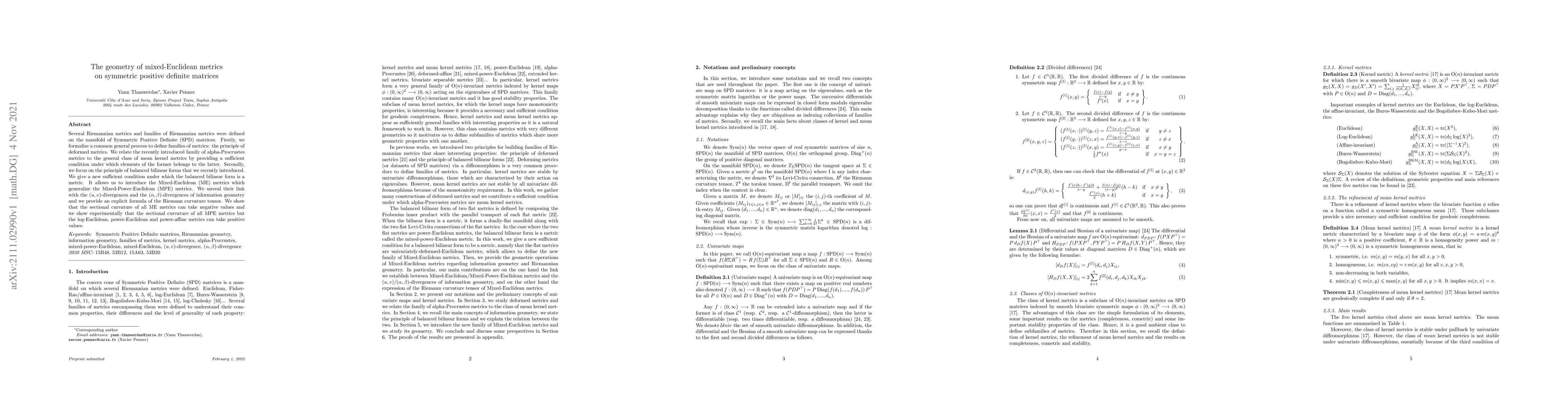 This paper formalizes a general method for defining families of Riemannian metrics on Symmetric Positive Definite matrices, introducing Mixed-Euclidean metrics that generalize Mixed-Power-Euclidean metrics. It also provides conditions for these metrics to be valid and explores their curvature properties.