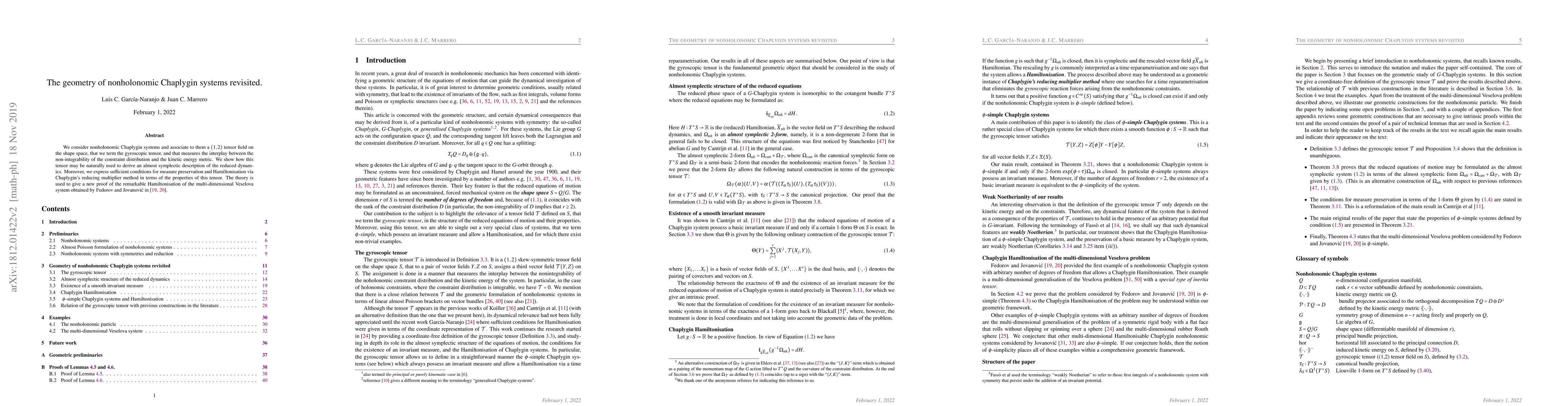 We consider nonholonomic Chaplygin systems and associate to them a $(1,2)$ tensor field on the shape space, that we term the gyroscopic tensor, and that measures the interplay between the non-integrability of the constraint distribution and the kinetic energy metric. We show how this tensor may be naturally used to derive an almost symplectic description of the reduced dynamics. Moreover, we express sufficient conditions for measure preservation and Hamiltonisation via Chaplygin's reducing multiplier method in terms of the properties of this tensor. The theory is used to give a new proof of the remarkable Hamiltonisation of the multi-dimensional Veselova system obtained by Fedorov and Jovanovi\'c in J. Nonlinear Sci. 2004, and Reg. Chaot. Dyn. 2009.