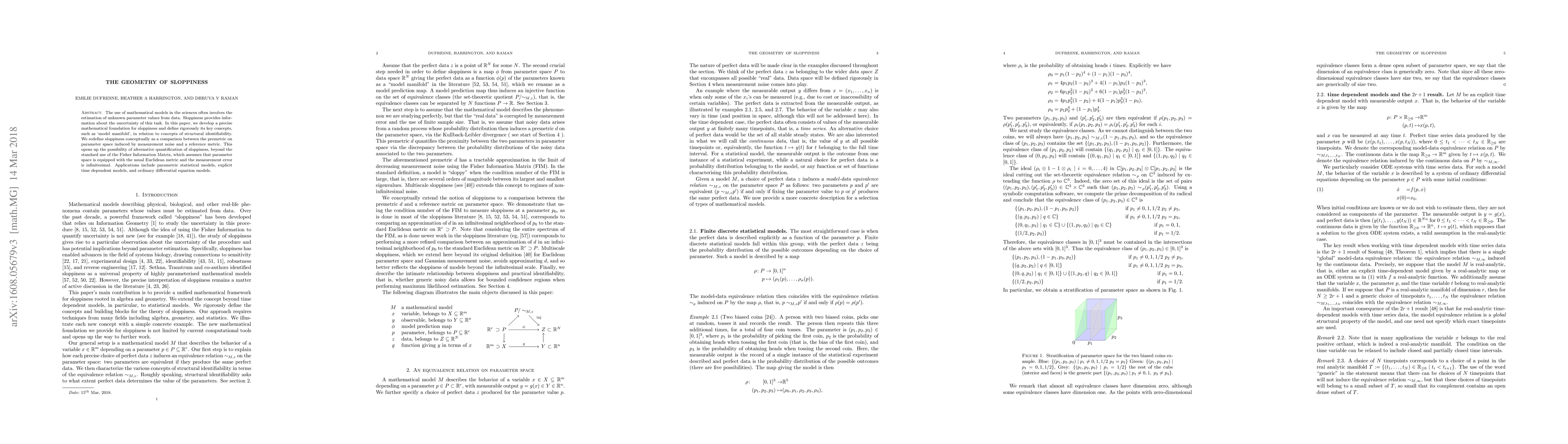 The use of mathematical models in the sciences often involves the estimation of unknown parameter values from data. Sloppiness provides information about the uncertainty of this task. In this paper, we develop a precise mathematical foundation for sloppiness and define rigorously its key concepts, such as `model manifold', in relation to concepts of structural identifiability. We redefine sloppiness conceptually as a comparison between the premetric on parameter space induced by measurement noise and a reference metric. This opens up the possibility of alternative quantification of sloppiness, beyond the standard use of the Fisher Information Matrix, which assumes that parameter space is equipped with the usual Euclidean metric and the measurement error is infinitesimal. Applications include parametric statistical models, explicit time dependent models, and ordinary differential equation models.