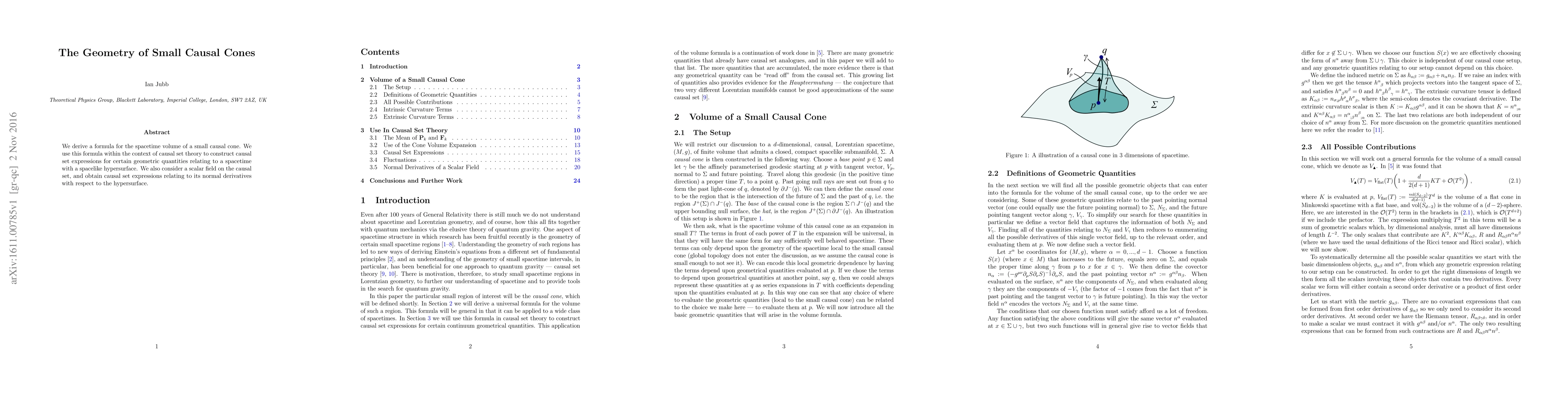 This paper derives a formula for the spacetime volume of a small causal cone and uses it to construct causal set expressions for geometric quantities and normal derivatives of scalar fields in causal set theory.