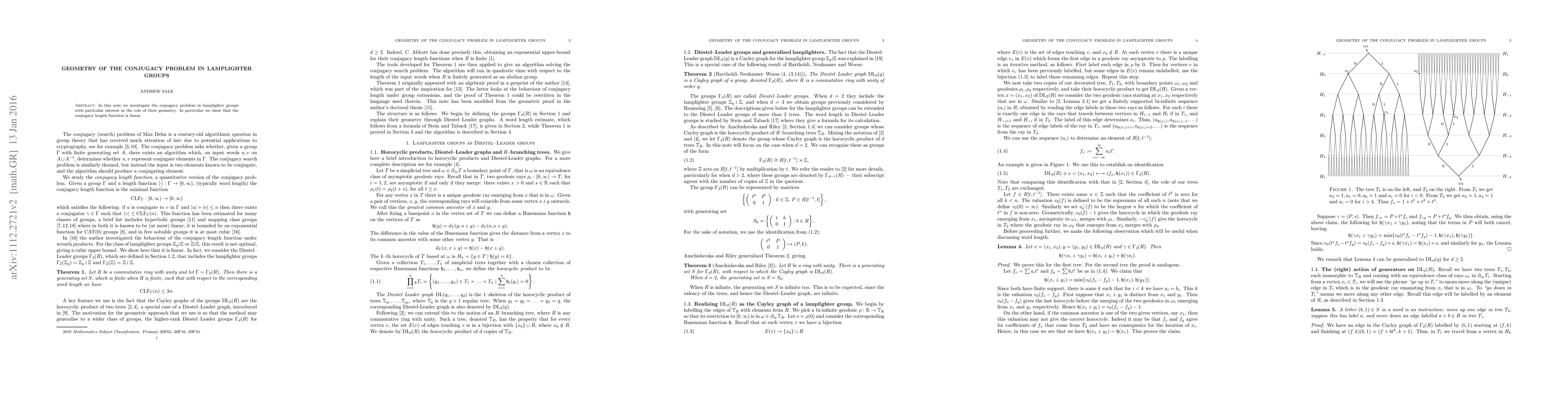 Summary: This paper explores the conjugacy problem in lamplighter groups, focusing on their geometric properties, and demonstrates that the conjugacy length function exhibits linear behavior.