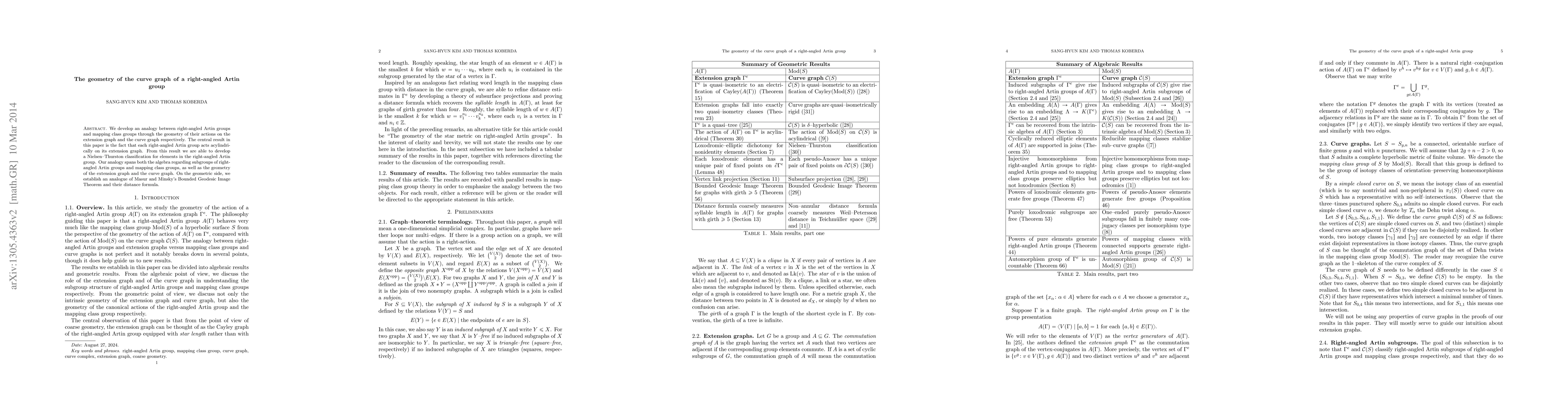 We develop an analogy between right-angled Artin groups and mapping class groups through the geometry of their actions on the extension graph and the curve graph respectively. The central result in this paper is the fact that each right-angled Artin group acts acylindrically on its extension graph. From this result we are able to develop a Nielsen--Thurston classification for elements in the right-angled Artin group. Our analogy spans both the algebra regarding subgroups of right-angled Artin groups and mapping class groups, as well as the geometry of the extension graph and the curve graph. On the geometric side, we establish an analogue of Masur and Minsky's Bounded Geodesic Image Theorem and their distance formula.