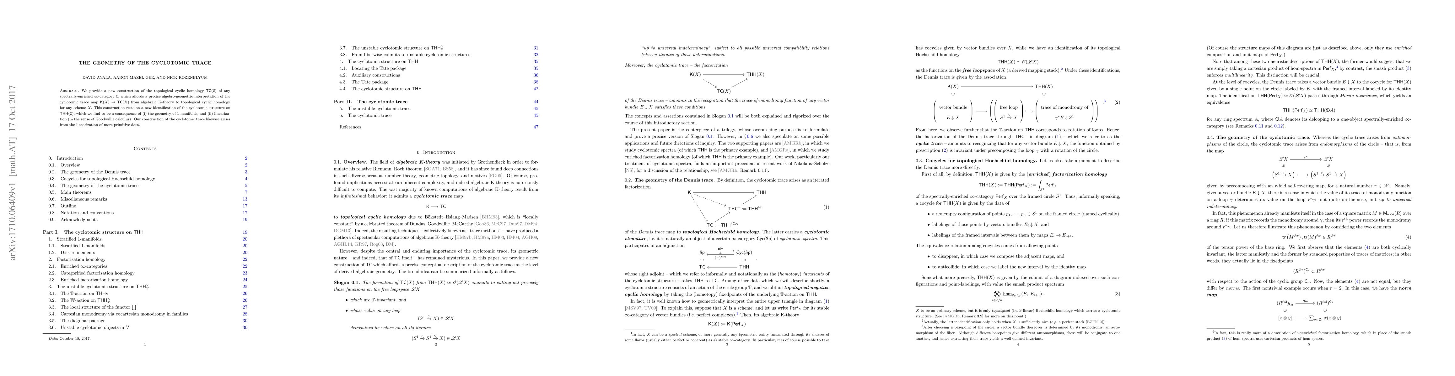 This paper constructs a new topological cyclic homology $TC(C)$ for $\infty$-categories $C$, offering an algebro-geometric interpretation of the cyclotomic trace map from algebraic K-theory to $TC$. The approach leverages the geometry of 1-manifolds and linearization from Goodwillie calculus.