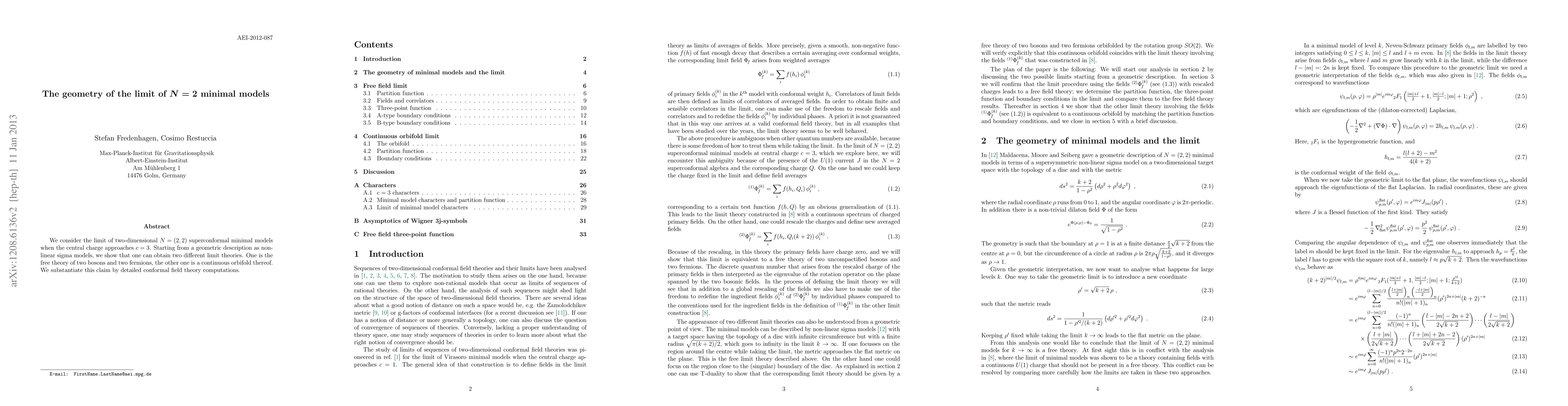 We consider the limit of two-dimensional N=(2,2) superconformal minimal models when the central charge approaches c=3. Starting from a geometric description as non-linear sigma models, we show that one can obtain two different limit theories. One is the free theory of two bosons and two fermions, the other one is a continuous orbifold thereof. We substantiate this claim by detailed conformal field theory computations.