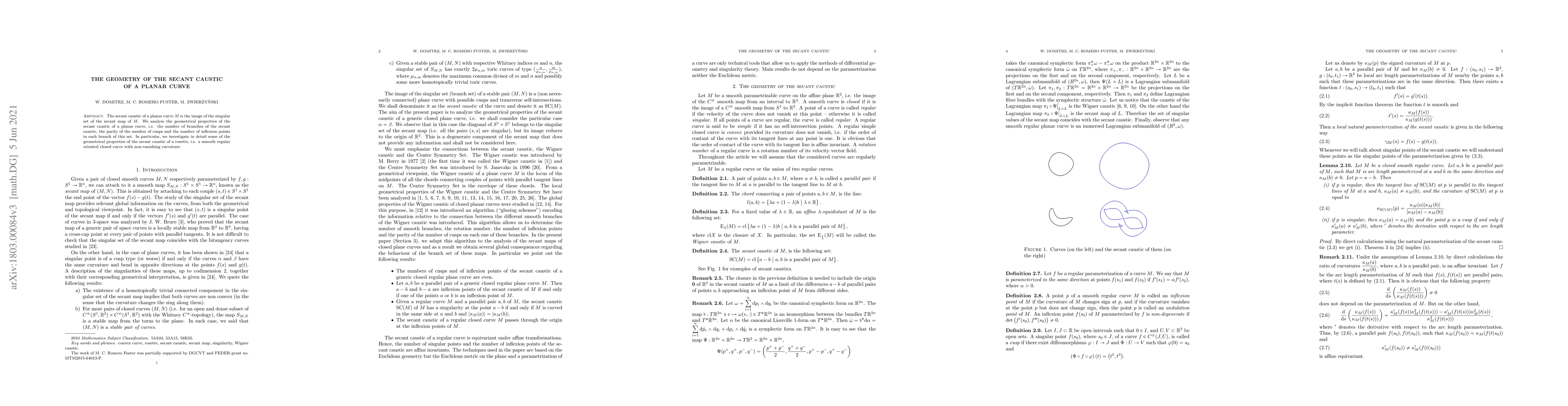 The secant caustic of a planar curve $M$ is the image of the singular set of the secant map of $M$. We analyse the geometrical properties of the secant caustic of a planar curve, i.e. the number of branches of the secant caustic, the parity of the number of cusps and the number of inflexion points in each branch of this set. In particular, we investigate in detail some of the geometrical properties of the secant caustic of a rosette, i.e. a smooth regular oriented closed curve with non-vanishing curvature.
