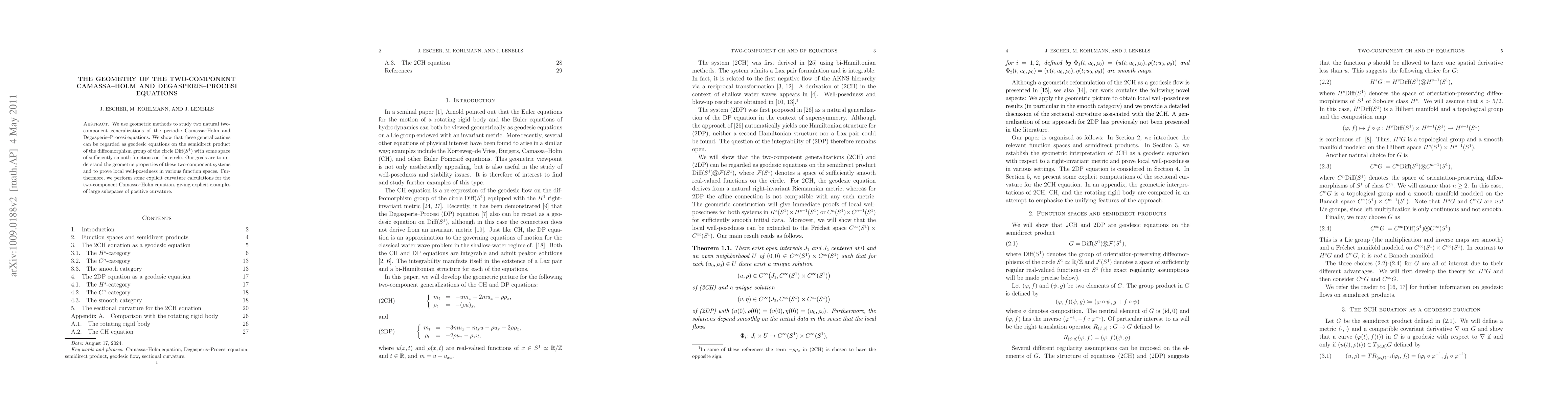 This paper studies two-component generalizations of the Camassa-Holm and Degasperis-Procesi equations using geometric methods, showing they are geodesic equations on a semidirect product involving the diffeomorphism group of the circle. The research aims to explore their geometric properties and prove local well-posedness, with explicit curvature calculations highlighting large subspaces of positive curvature for the Camassa-Holm case.