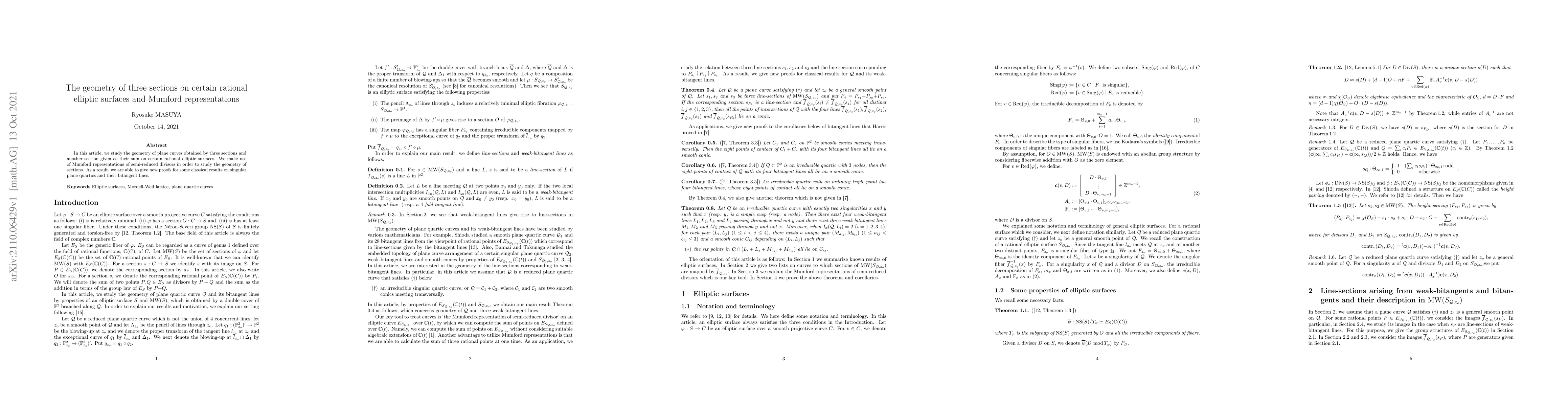 This paper studies the geometry of plane curves on rational elliptic surfaces obtained from adding three sections to another section, using Mumford representations to analyze sections and prove classical results about singular quartics and their bitangent lines.