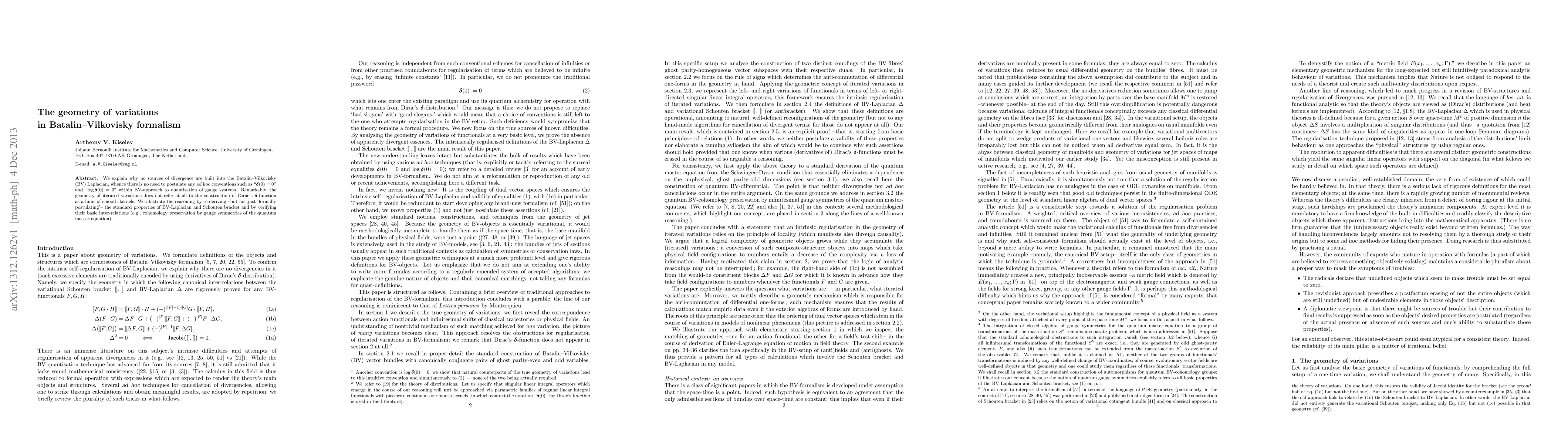 This is a paper about geometry of (iterated) variations. We explain why no sources of divergence are built into the Batalin-Vilkovisky (BV) Laplacian, whence there is no need to postulate any ad hoc conventions such as "$\delta(0)=0$" and "$\log\delta(0)=0$" within BV-approach to quantisation of gauge systems. Remarkably, the geometry of iterated variations does not refer at all to the construction of Dirac's $\delta$-function as a limit of smooth kernels. We illustrate the reasoning by re-deriving - but not just "formally postulating" - the standard properties of BV-Laplacian and Schouten bracket and by verifying their basic inter-relations (e.g., cohomology preservation by gauge symmetries of the quantum master-equation).