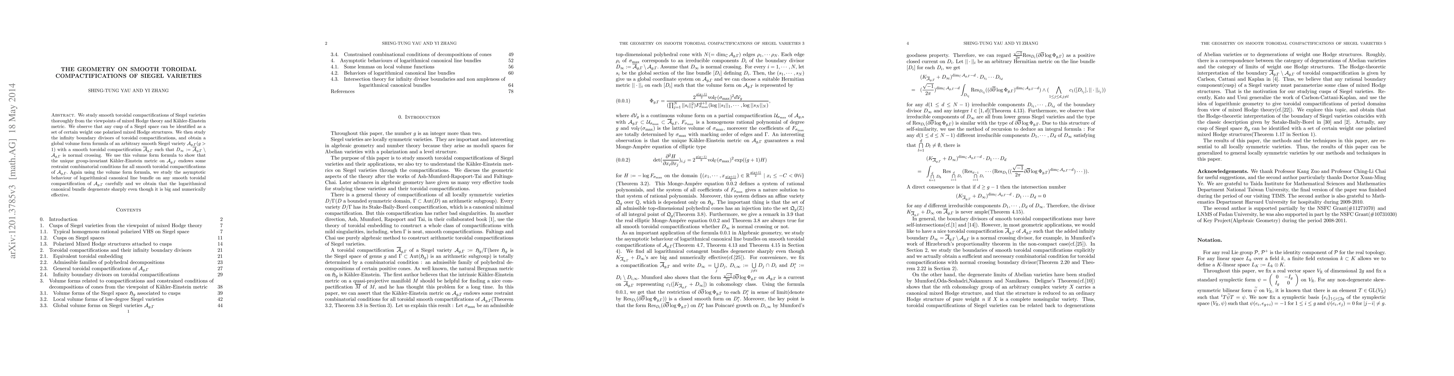 This paper investigates smooth toroidal compactifications of Siegel varieties and their applications, particularly focusing on the identification of cusps with weight one polarized mixed Hodge structures and deriving combinatorial conditions for these compactifications. It also explores the existence of Kähler-Einstein metrics and the intersection numbers via logarithmic canonical line bundles.