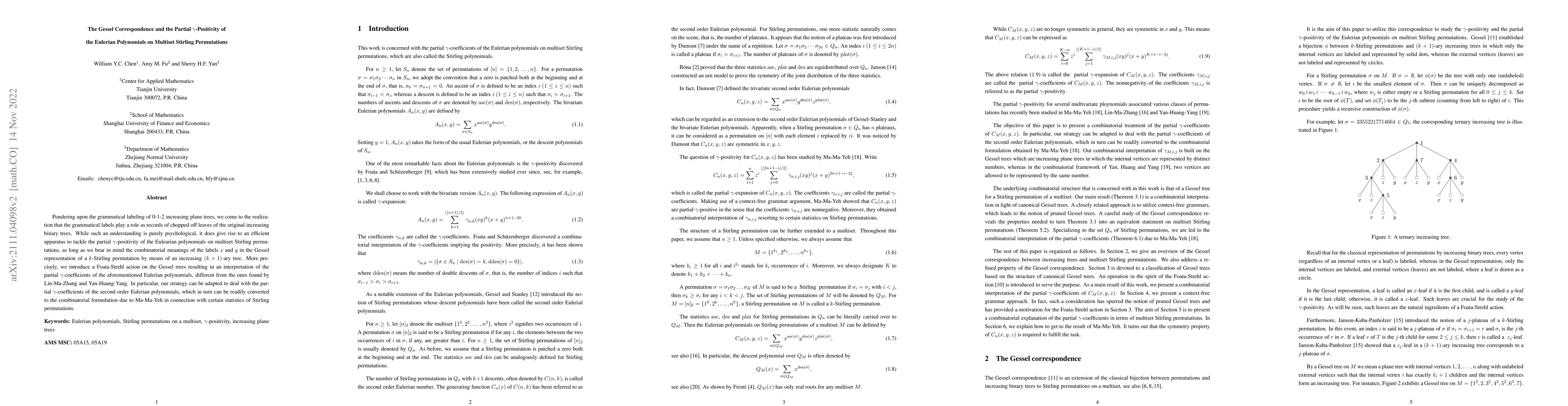 Pondering upon the grammatical labeling of 0-1-2 increasing plane trees, we come to the realization that the grammatical labels play a role as records of chopped off leaves of the original increasing binary trees. While such an understanding is purely psychological, it does give rise to an efficient apparatus to tackle the partial $\gamma$-positivity of the Eulearian polynomials on multiset Stirling permutations, as long as we bear in mind the combinatorial meanings of the labels $x$ and $y$ in the Gessel representation of a $k$-Stirling permutation by means of an increasing $(k+1)$-ary tree. More precisely, we introduce a Foata-Strehl action on the Gessel trees resulting in an interpretation of the partial $\gamma$-coefficients of the aforementioned Eulerian polynomials, different from the ones found by Lin-Ma-Zhang and Yan-Huang-Yang. In particular, our strategy can be adapted to deal with the partial $\gamma$-coefficients of the second order Eulerian polynomials, which in turn can be readily converted to the combinatorial formulation due to Ma-Ma-Yeh in connection with certain statistics of Stirling permutations.