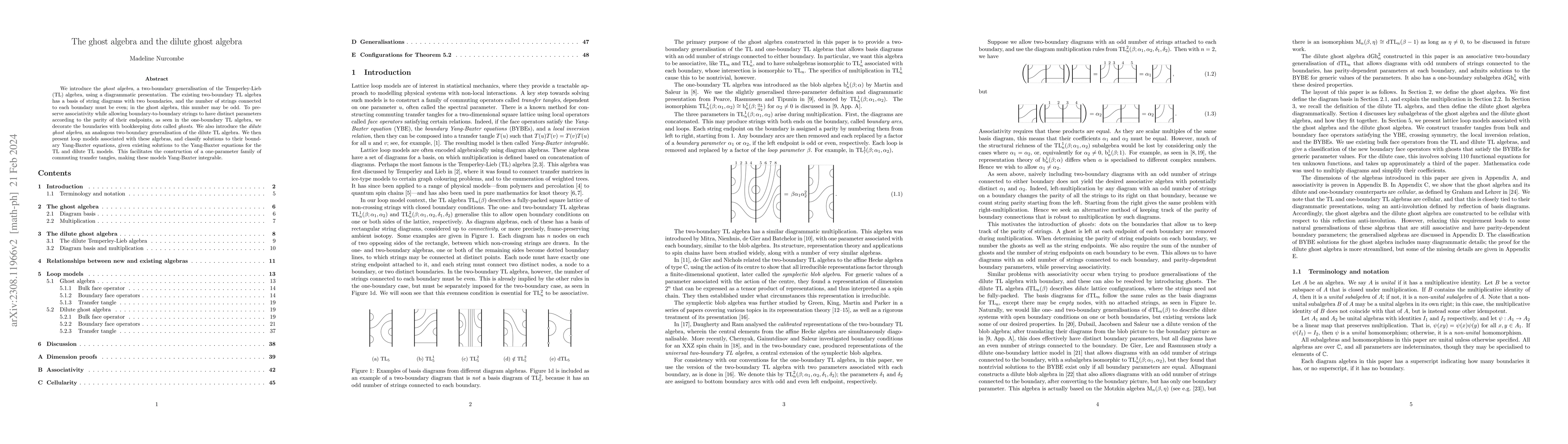 We introduce the ghost algebra, a two-boundary generalisation of the Temperley-Lieb (TL) algebra, using a diagrammatic presentation. The existing two-boundary TL algebra has a basis of string diagrams with two boundaries, and the number of strings connected to each boundary must be even; in the ghost algebra, this number may be odd. To preserve associativity while allowing boundary-to-boundary strings to have distinct parameters according to the parity of their endpoints, as seen in the one-boundary TL algebra, we decorate the boundaries with bookkeeping dots called ghosts. We also introduce the dilute ghost algebra, an analogous two-boundary generalisation of the dilute TL algebra. We then present loop models associated with these algebras, and classify solutions to their boundary Yang-Baxter equations, given existing solutions to the Yang-Baxter equations for the TL and dilute TL models. This facilitates the construction of a one-parameter family of commuting transfer tangles, making these models Yang-Baxter integrable.
