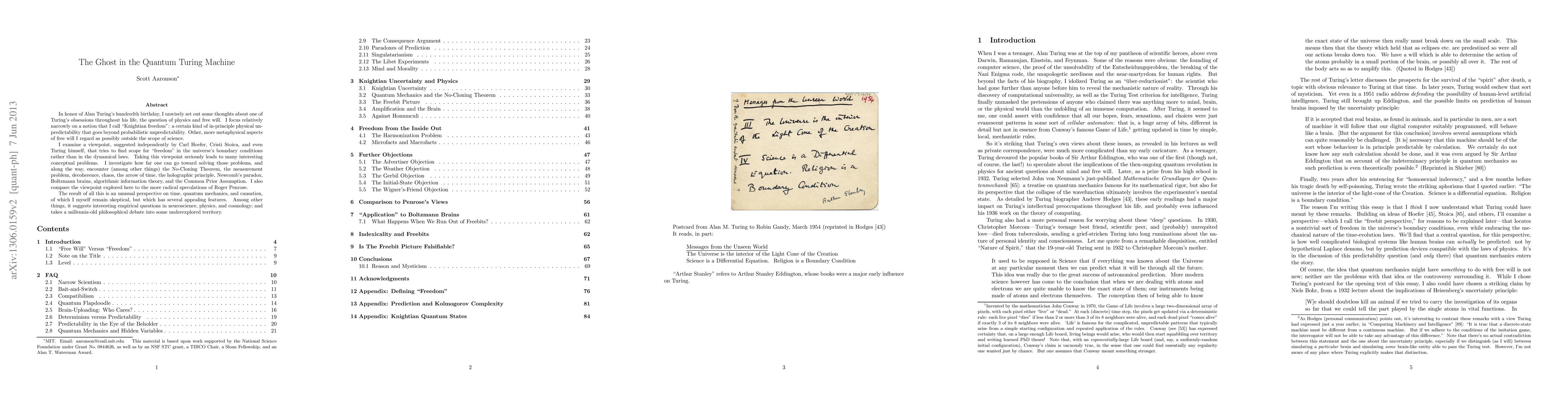 In honor of Alan Turing's hundredth birthday, I unwisely set out some thoughts about one of Turing's obsessions throughout his life, the question of physics and free will. I focus relatively narrowly on a notion that I call "Knightian freedom": a certain kind of in-principle physical unpredictability that goes beyond probabilistic unpredictability. Other, more metaphysical aspects of free will I regard as possibly outside the scope of science. I examine a viewpoint, suggested independently by Carl Hoefer, Cristi Stoica, and even Turing himself, that tries to find scope for "freedom" in the universe's boundary conditions rather than in the dynamical laws. Taking this viewpoint seriously leads to many interesting conceptual problems. I investigate how far one can go toward solving those problems, and along the way, encounter (among other things) the No-Cloning Theorem, the measurement problem, decoherence, chaos, the arrow of time, the holographic principle, Newcomb's paradox, Boltzmann brains, algorithmic information theory, and the Common Prior Assumption. I also compare the viewpoint explored here to the more radical speculations of Roger Penrose. The result of all this is an unusual perspective on time, quantum mechanics, and causation, of which I myself remain skeptical, but which has several appealing features. Among other things, it suggests interesting empirical questions in neuroscience, physics, and cosmology; and takes a millennia-old philosophical debate into some underexplored territory.